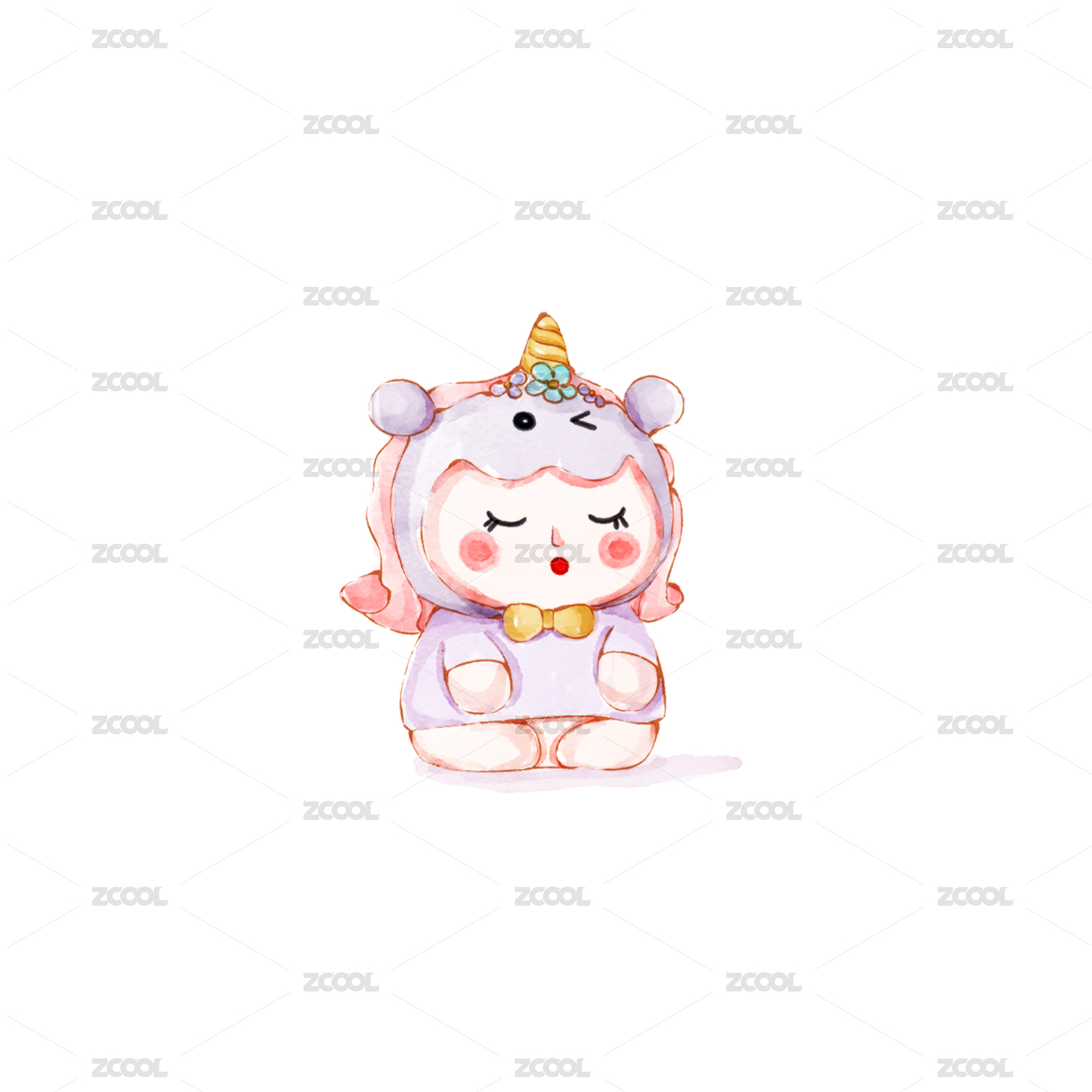 原创插画手绘小清新淡彩小娃娃