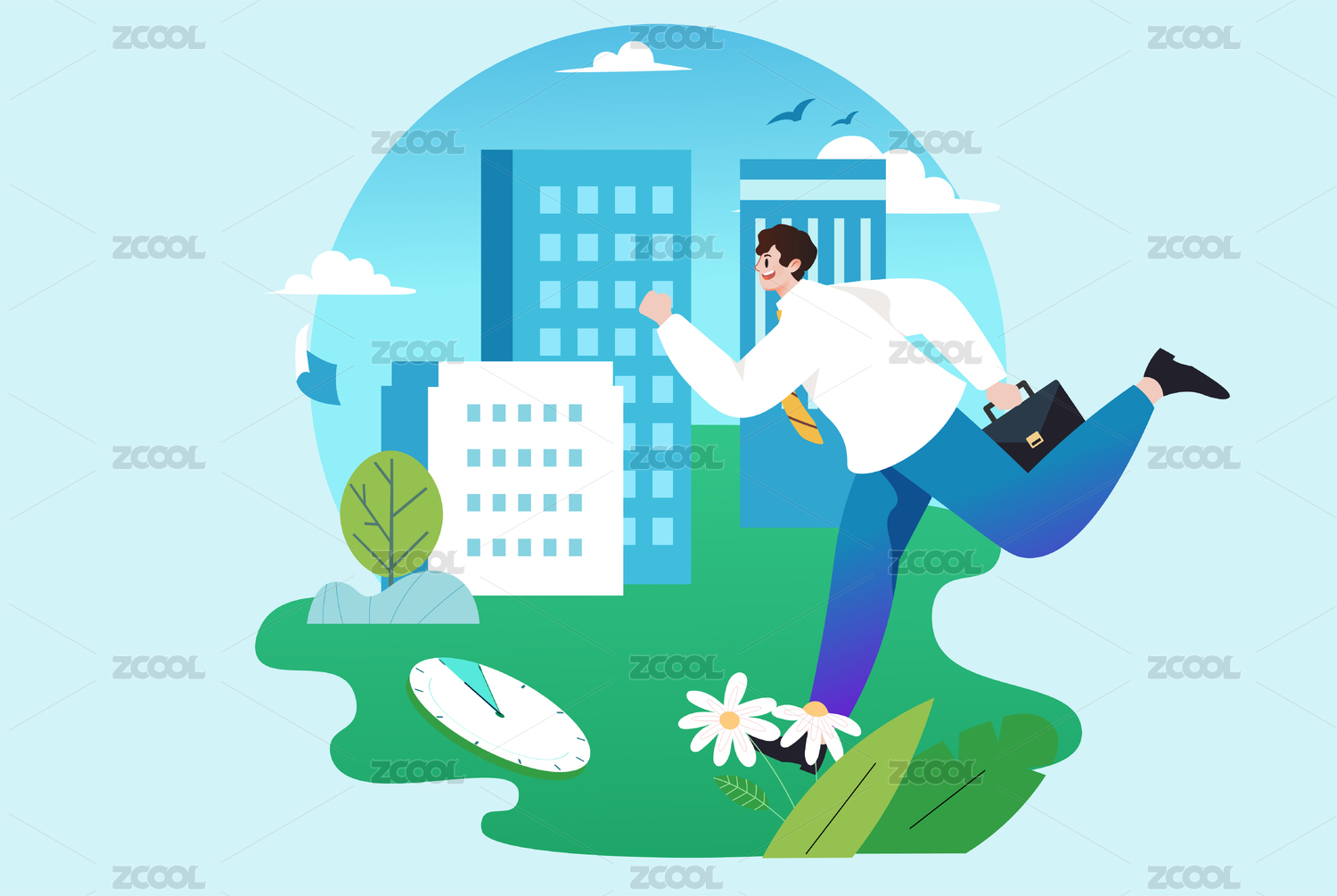 人物上班工作赶时间迟到奔跑活动倒计时插画
