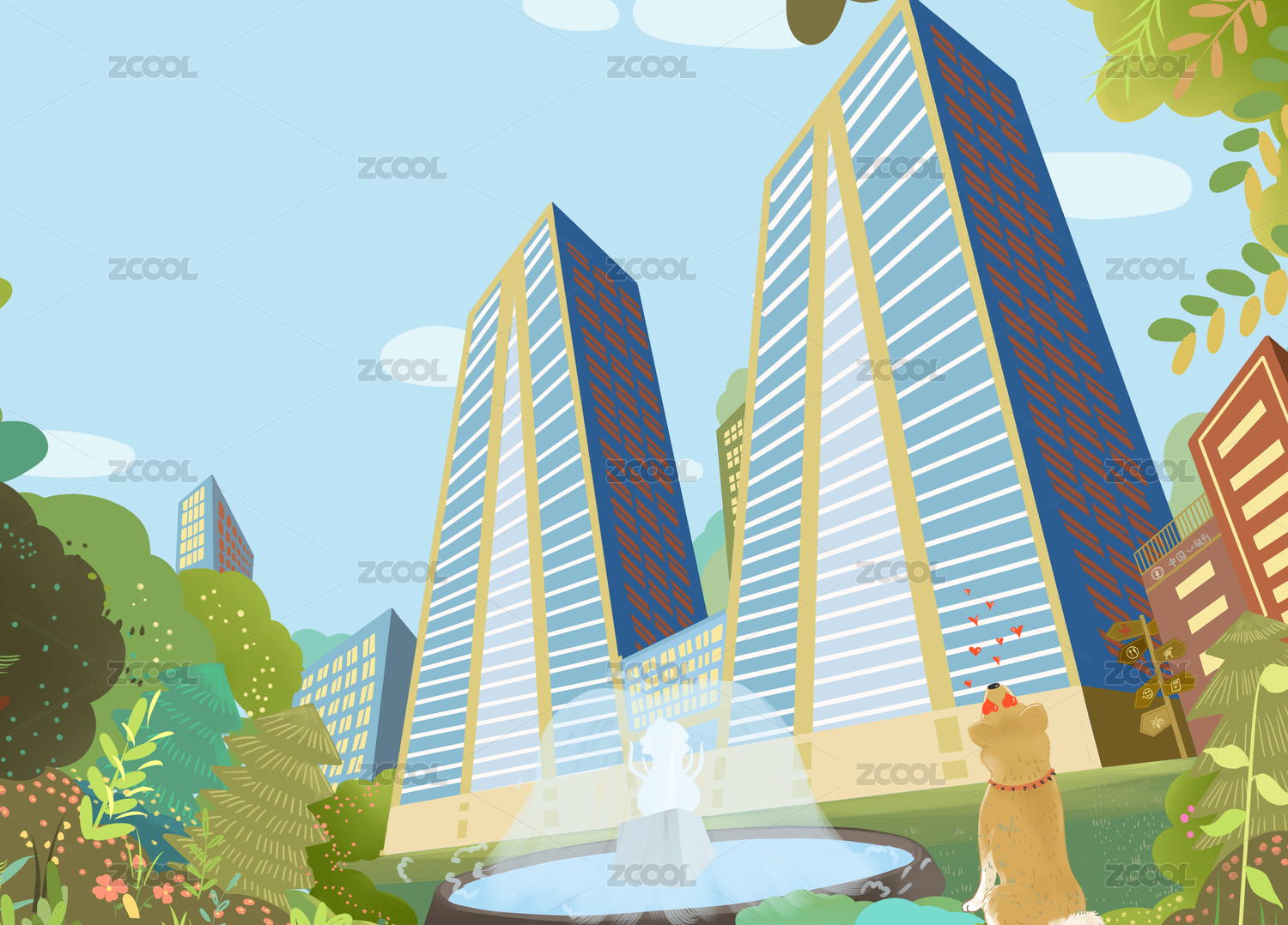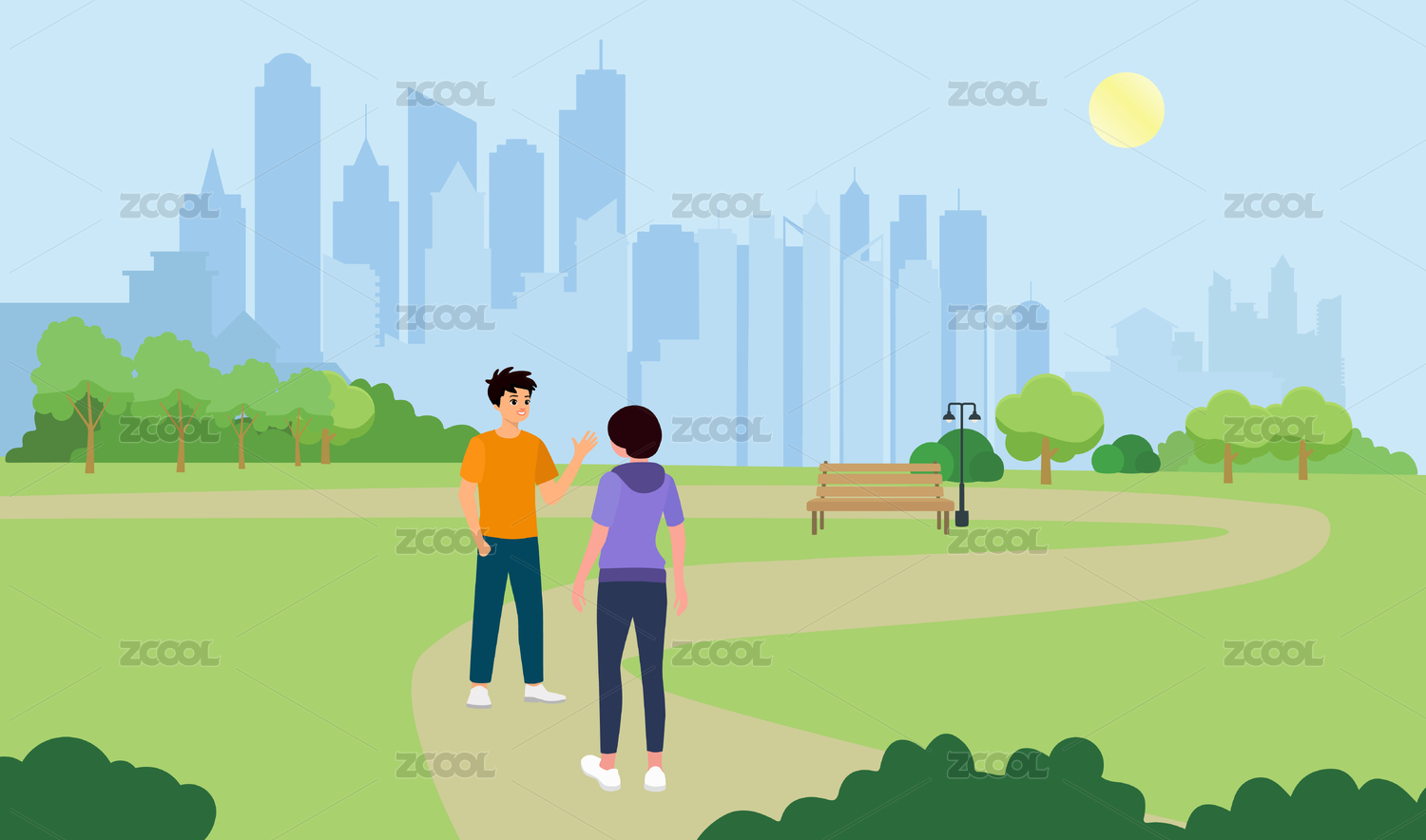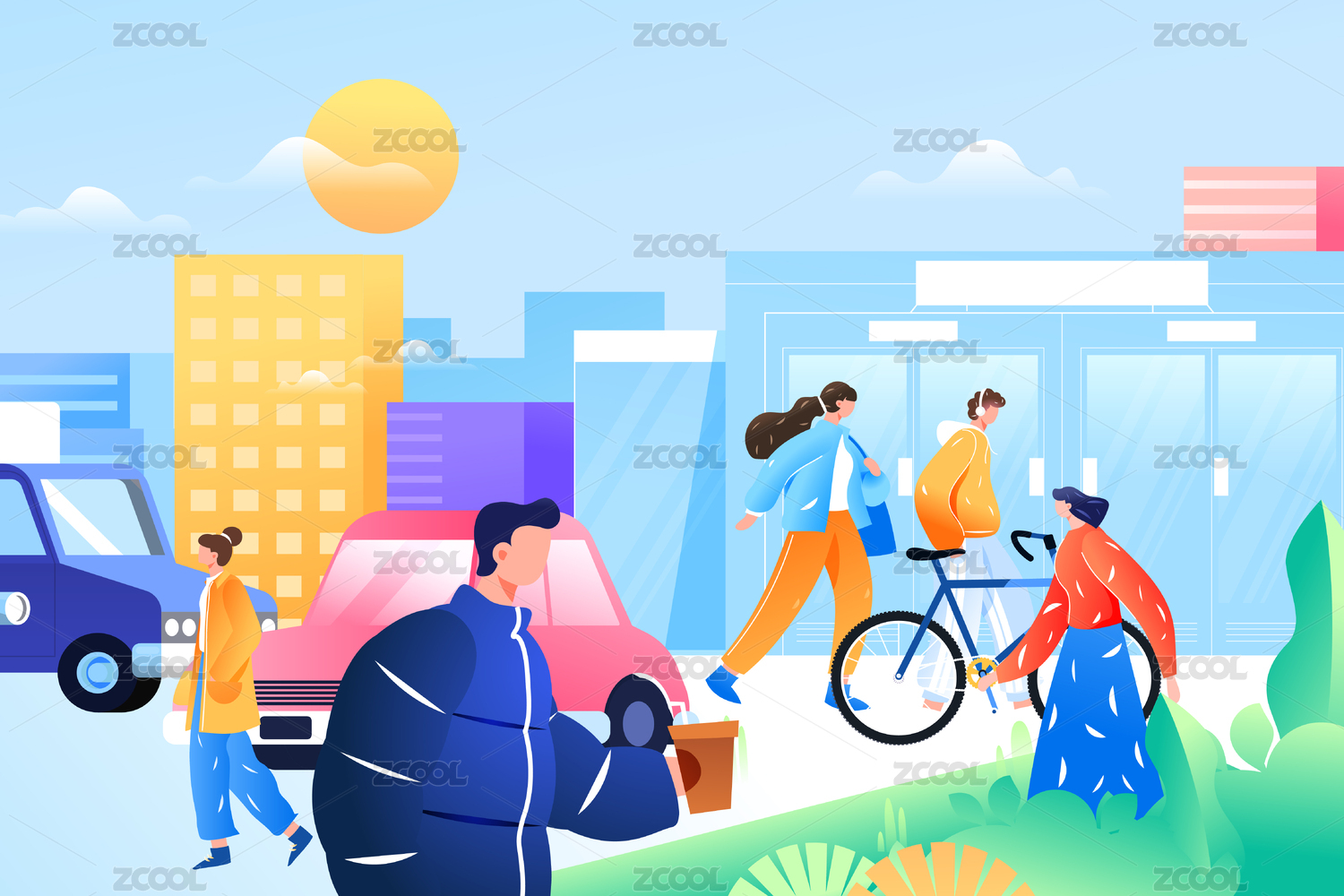 卡通立春踏青出游旅行城市风景矢量背景插画