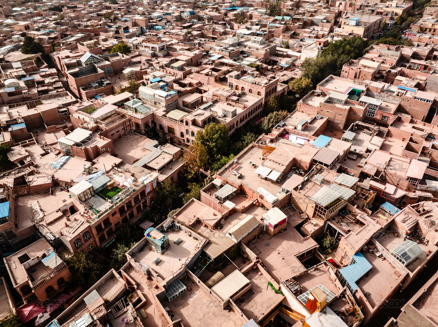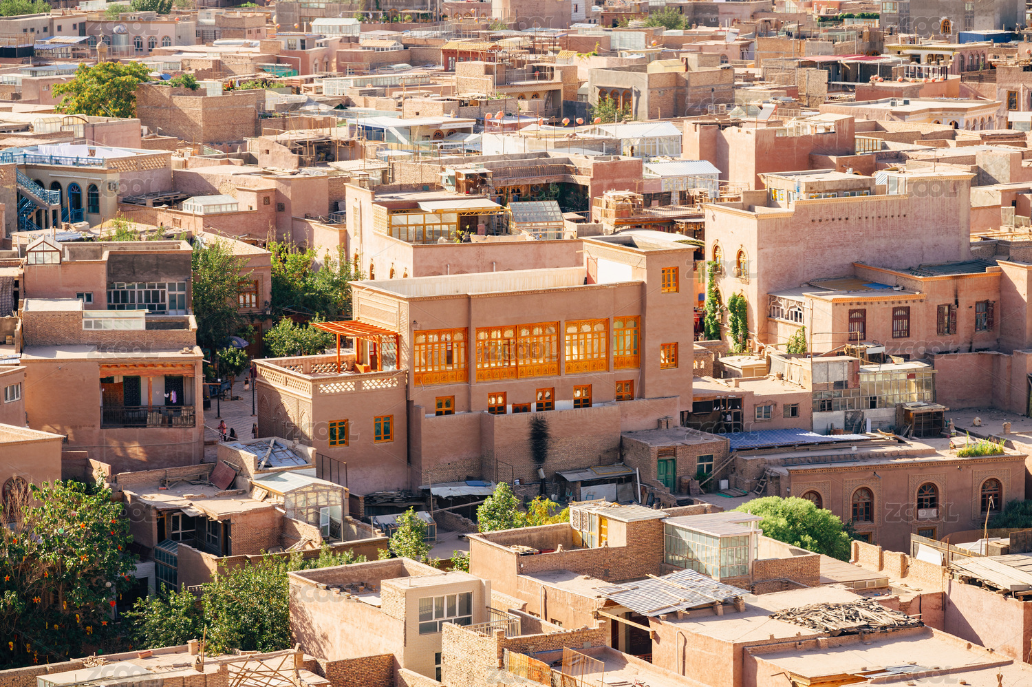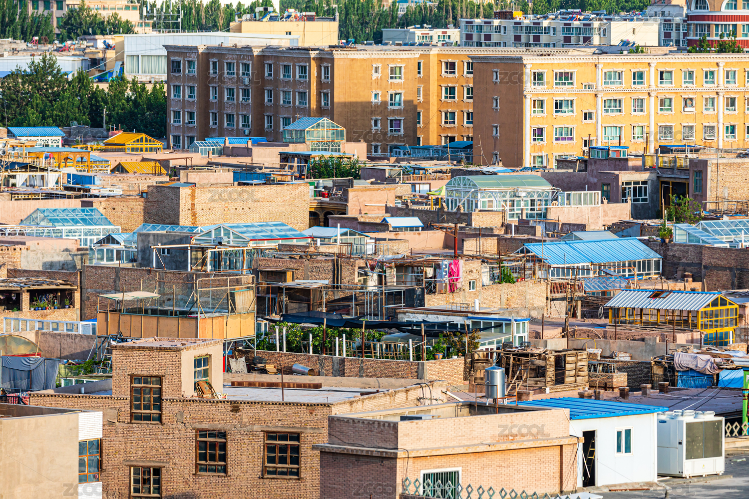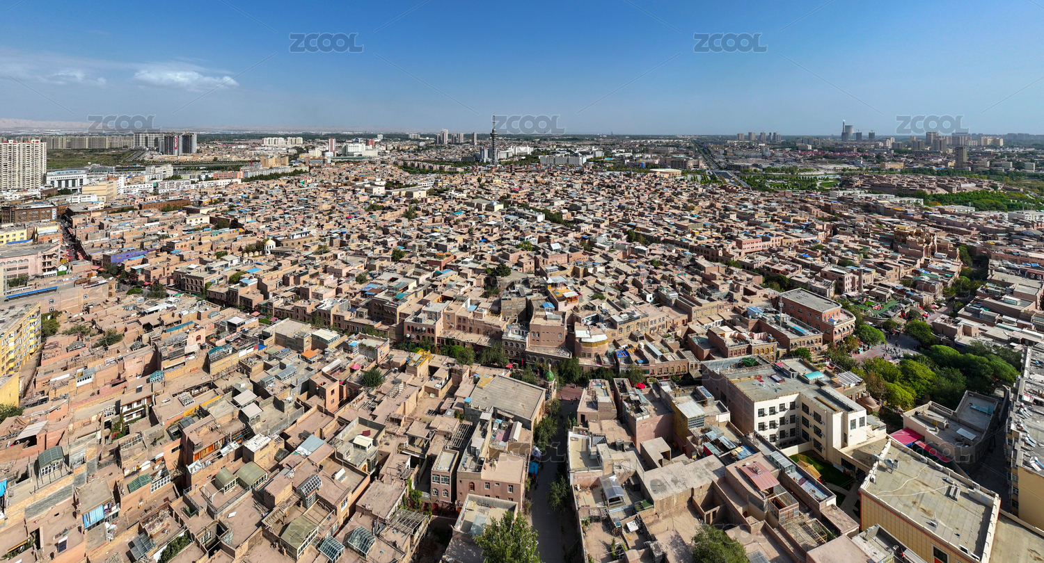 中国新疆喀什老城全景 喀什艾提尕尔清真寺