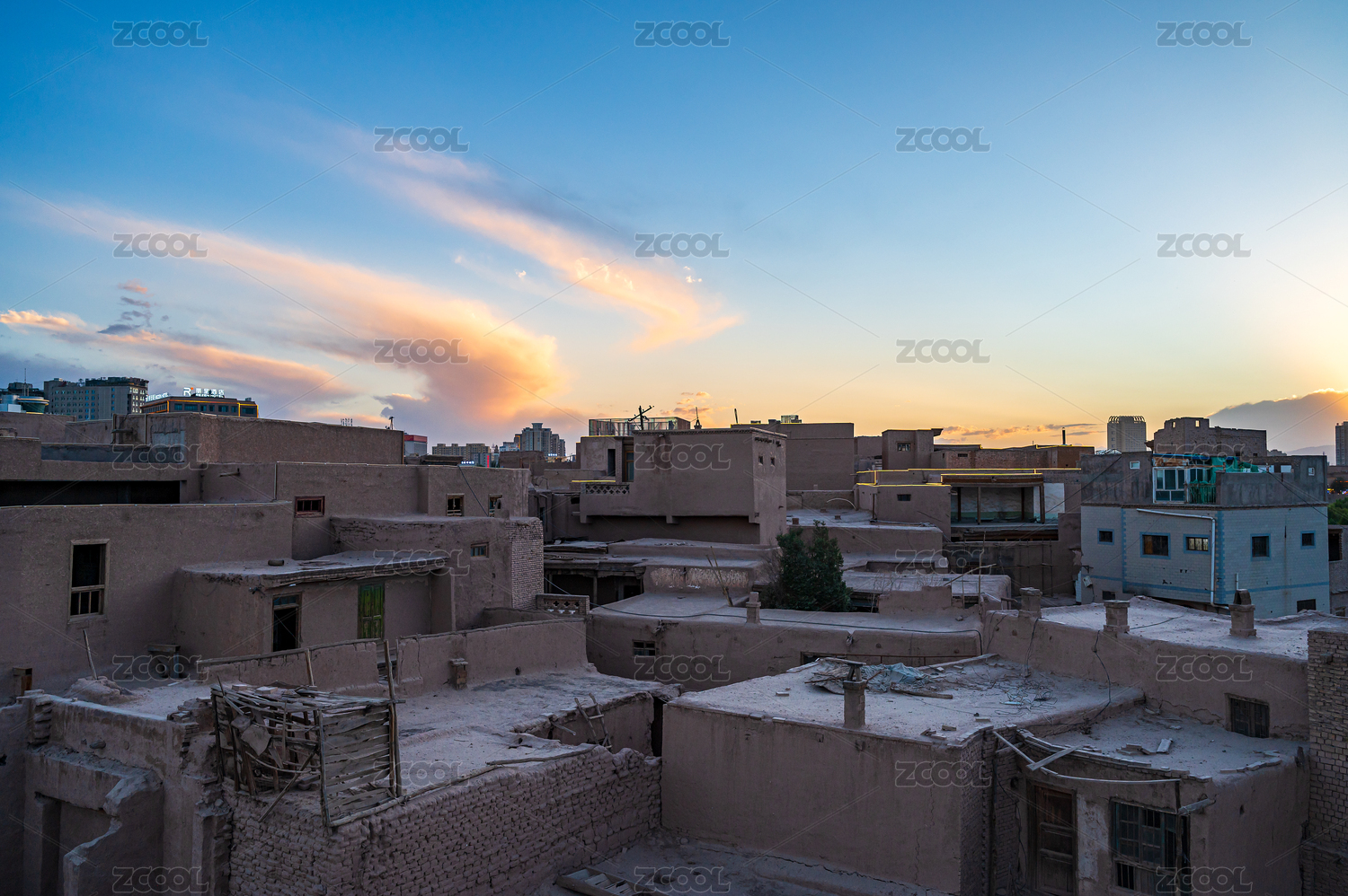 傍晚中国新疆喀什高台民居遗址风貌景观