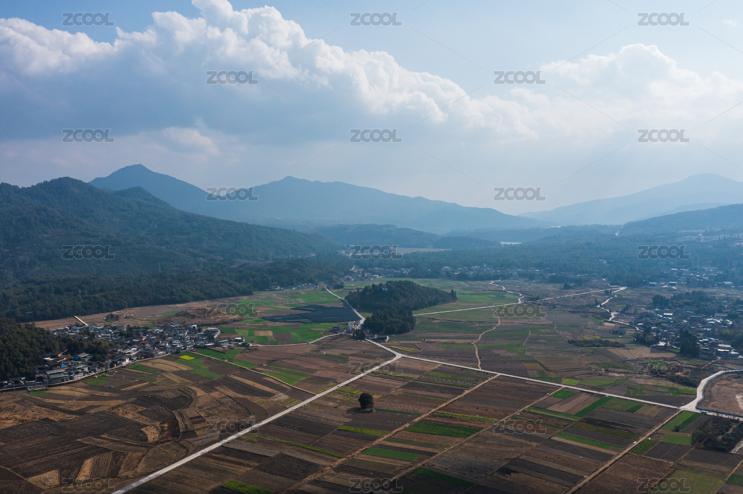 云南德宏州瑞丽江中缅边境乡村田野航拍景观