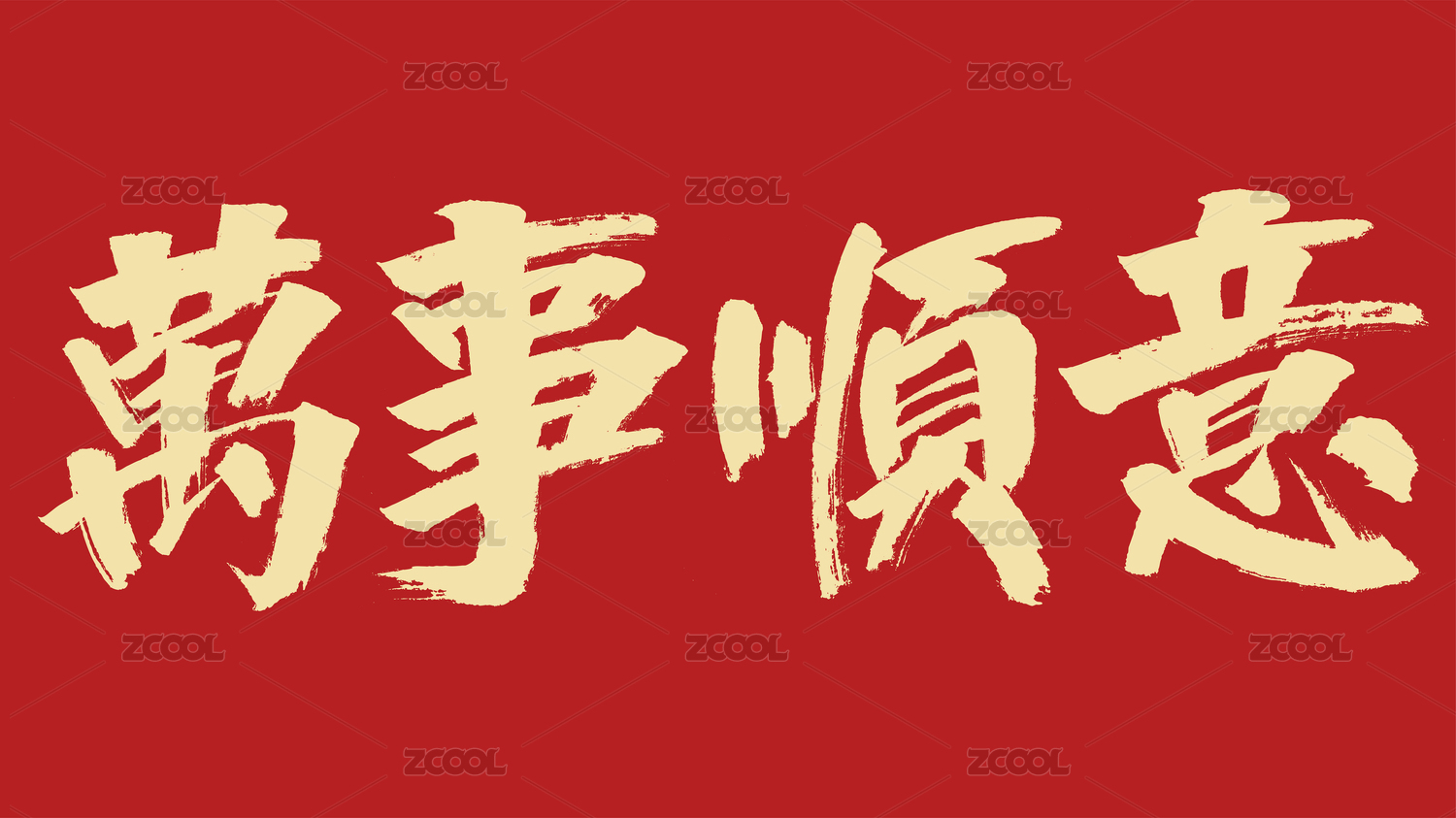 万事顺意汉字书法字体设计中国风