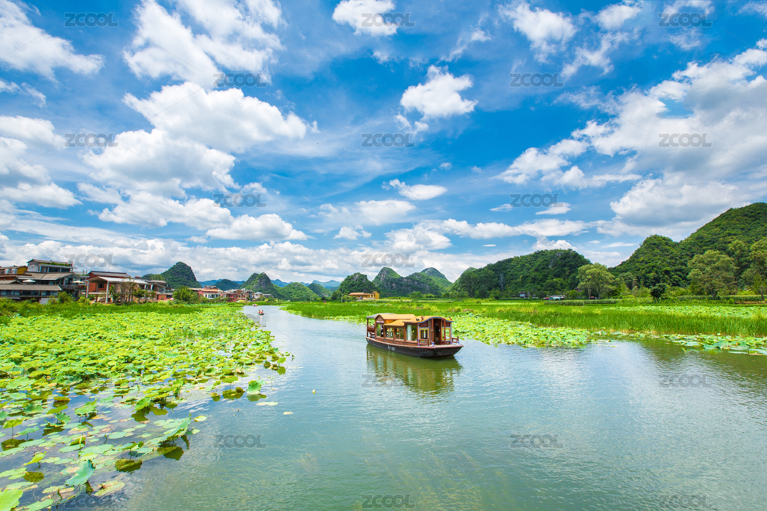 云南,普者黑,丘北县,清晨,旅游,晴天,阳光,舟,小船,湖泊