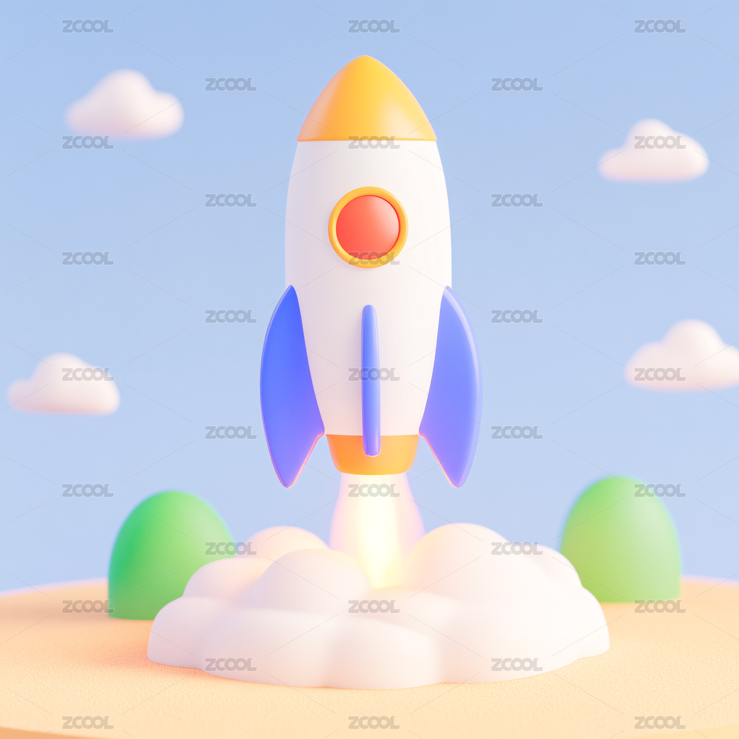 3d卡通火箭发射