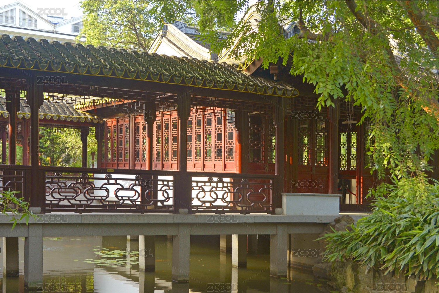四川成都龙潭水乡江南风格风雨廊及亭台楼阁