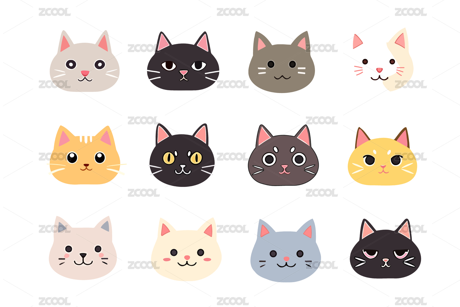 十二张猫脸矢量图素材集合