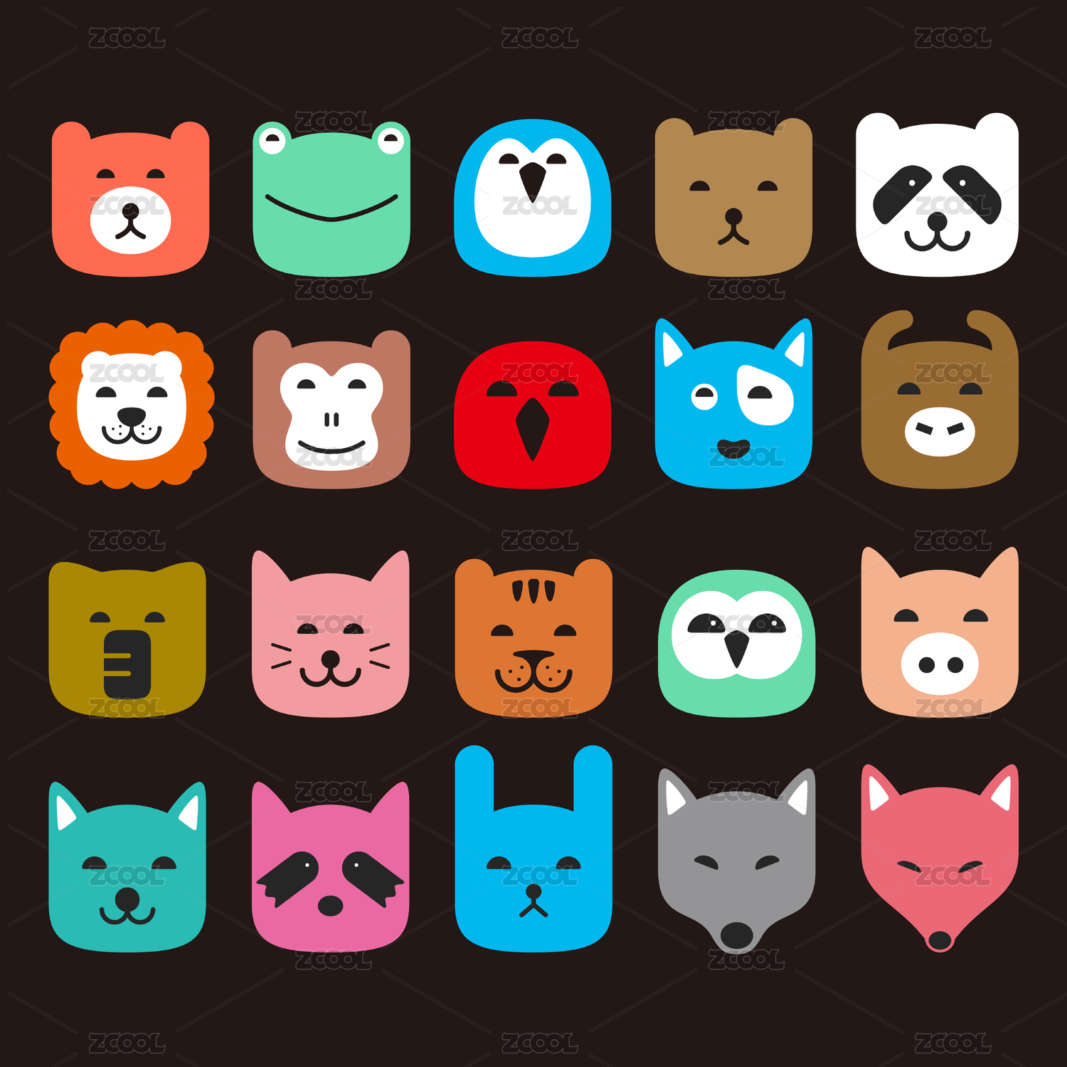 卡通动物头像图案
