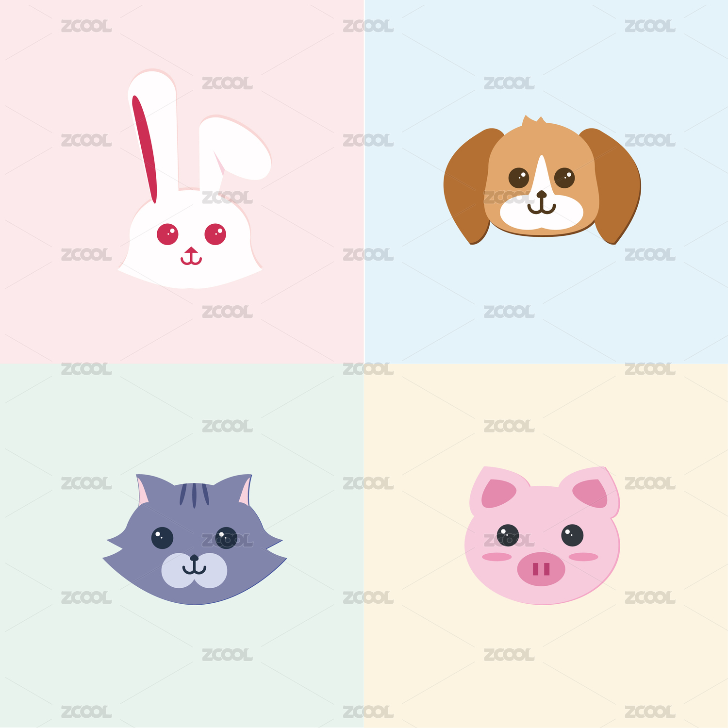 卡通,插画,矢量,动物,可爱,猫咪,狗,兔子,小熊,猪