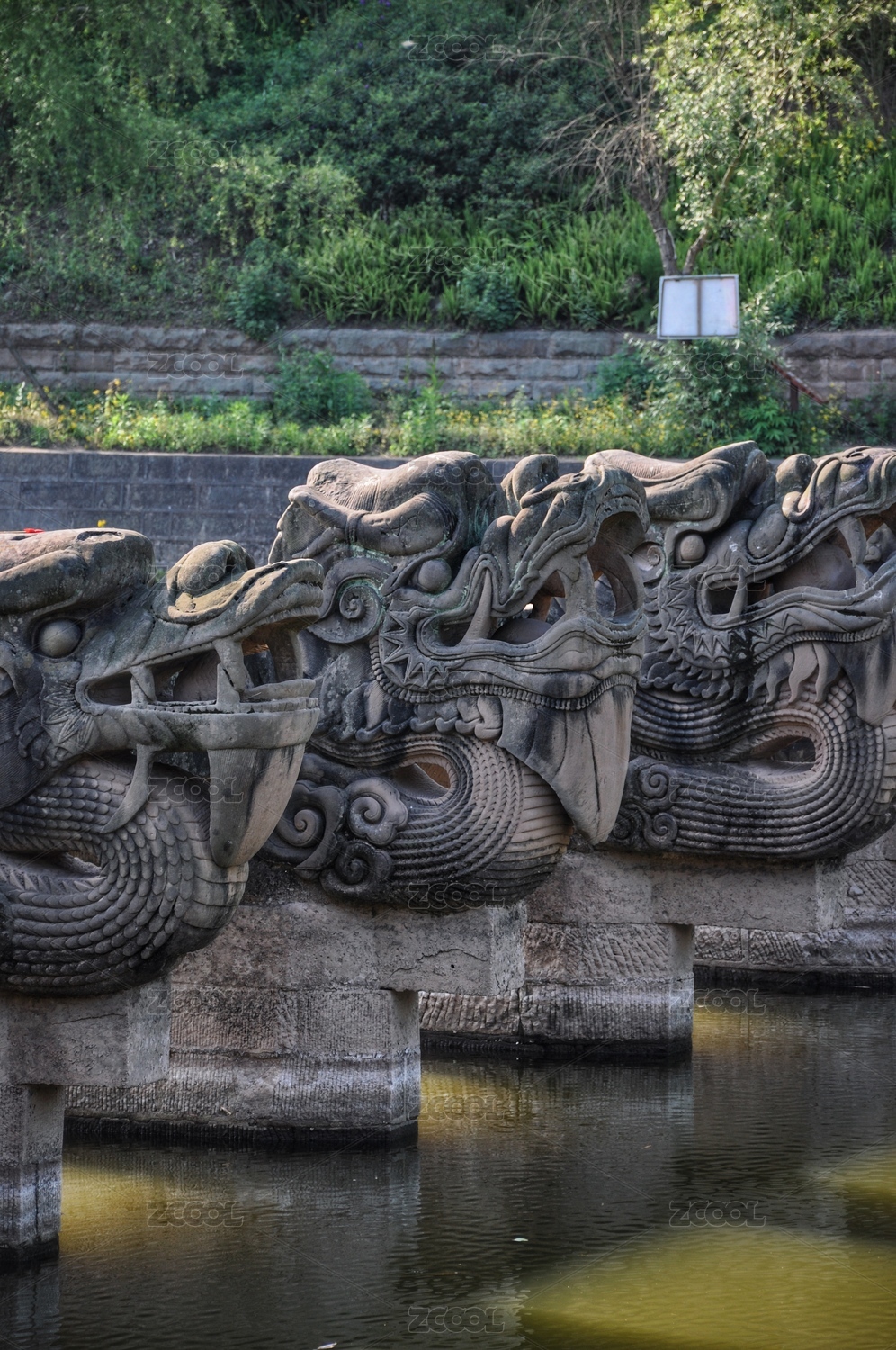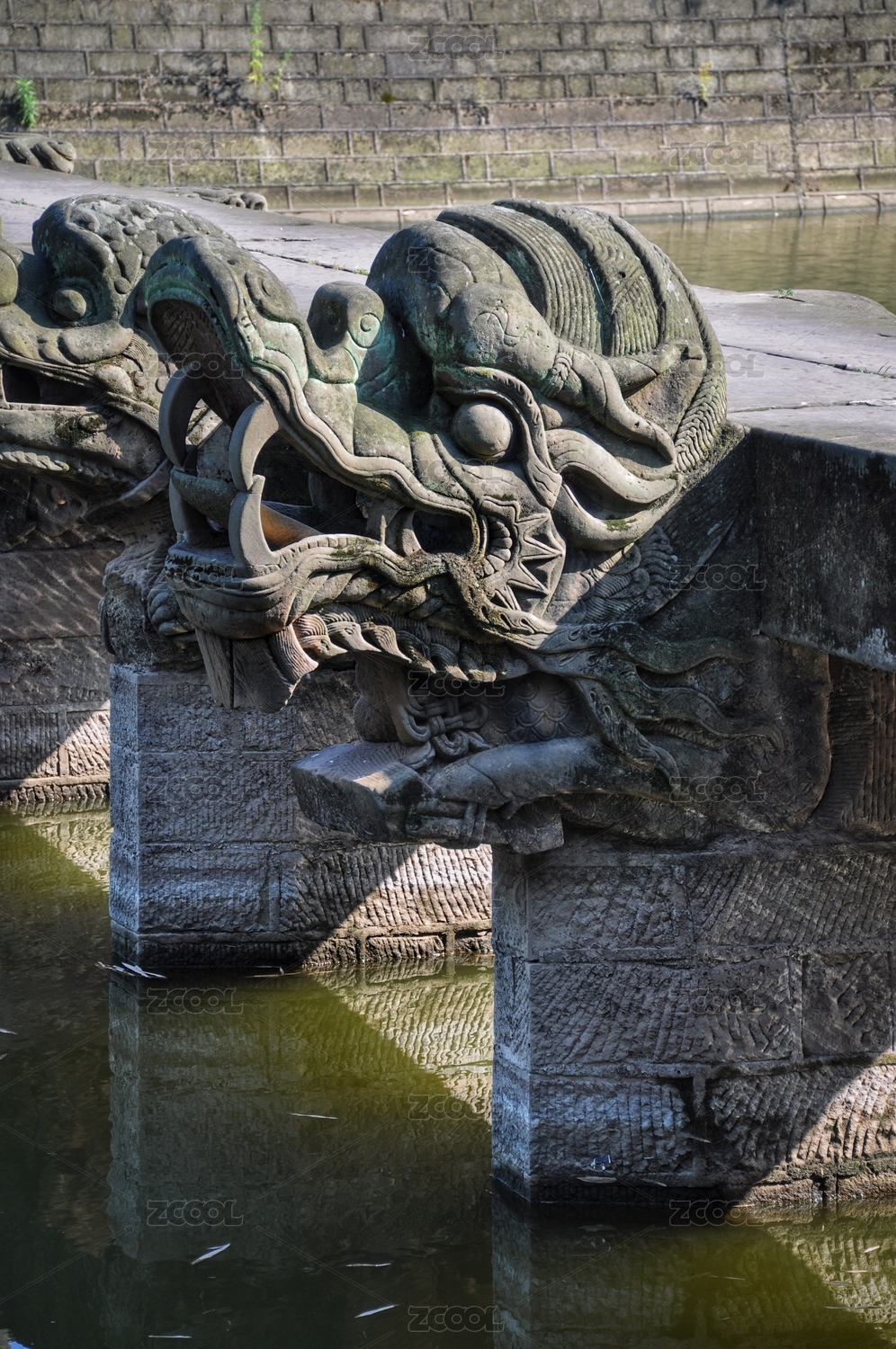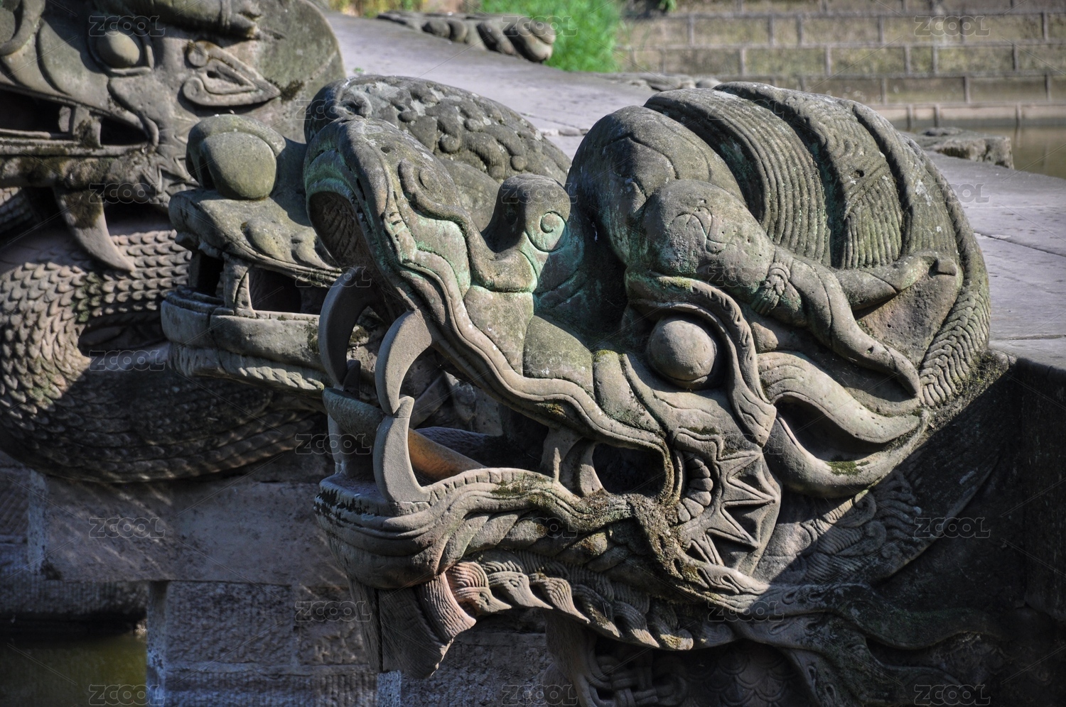 中国四川泸县龙脑桥 生动威武的石刻龙头