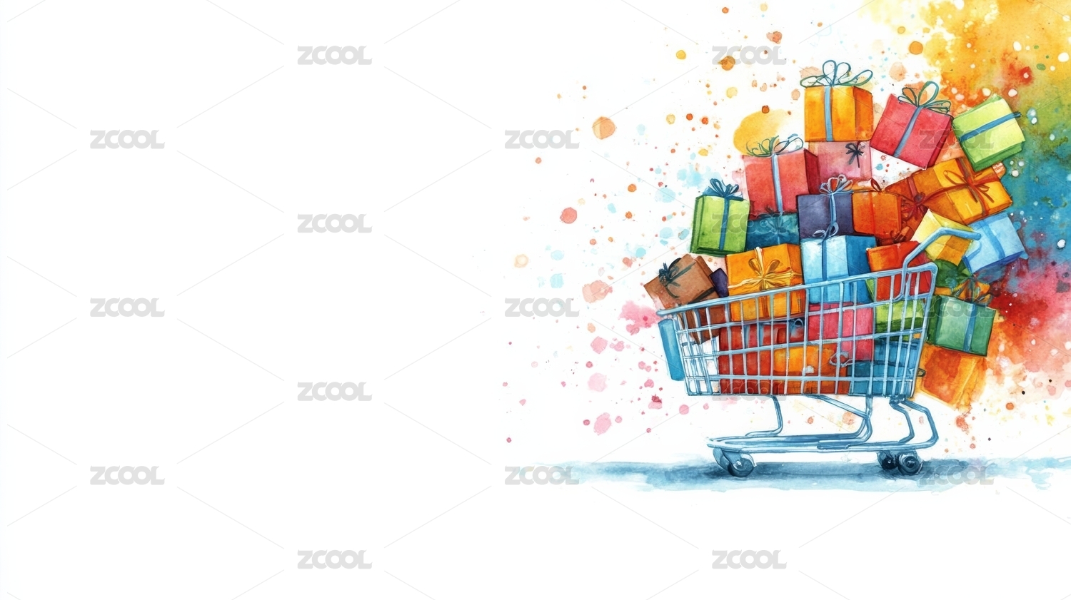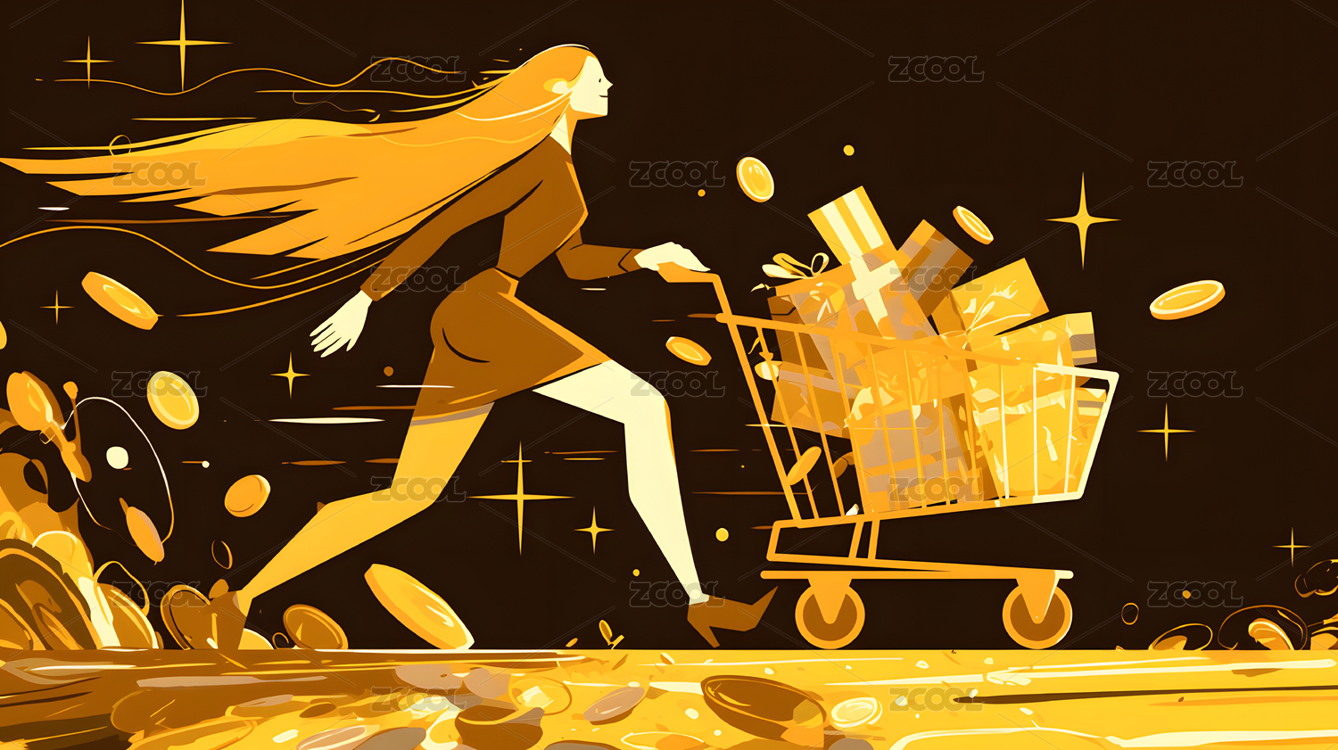 购物车,小猫,小黑猫,插画,购物,DXCZ202401,黑白色,金色,礼品,商品