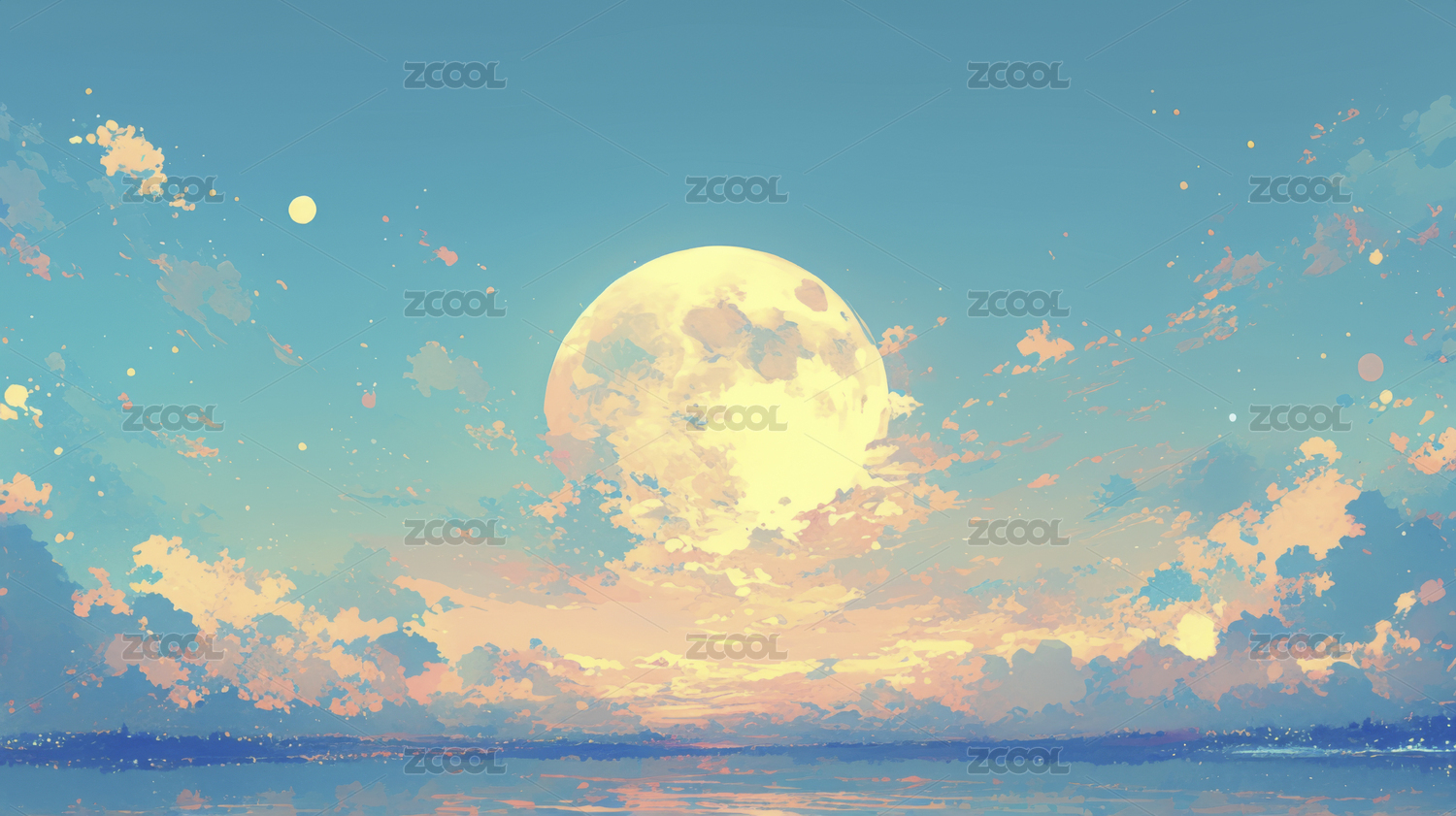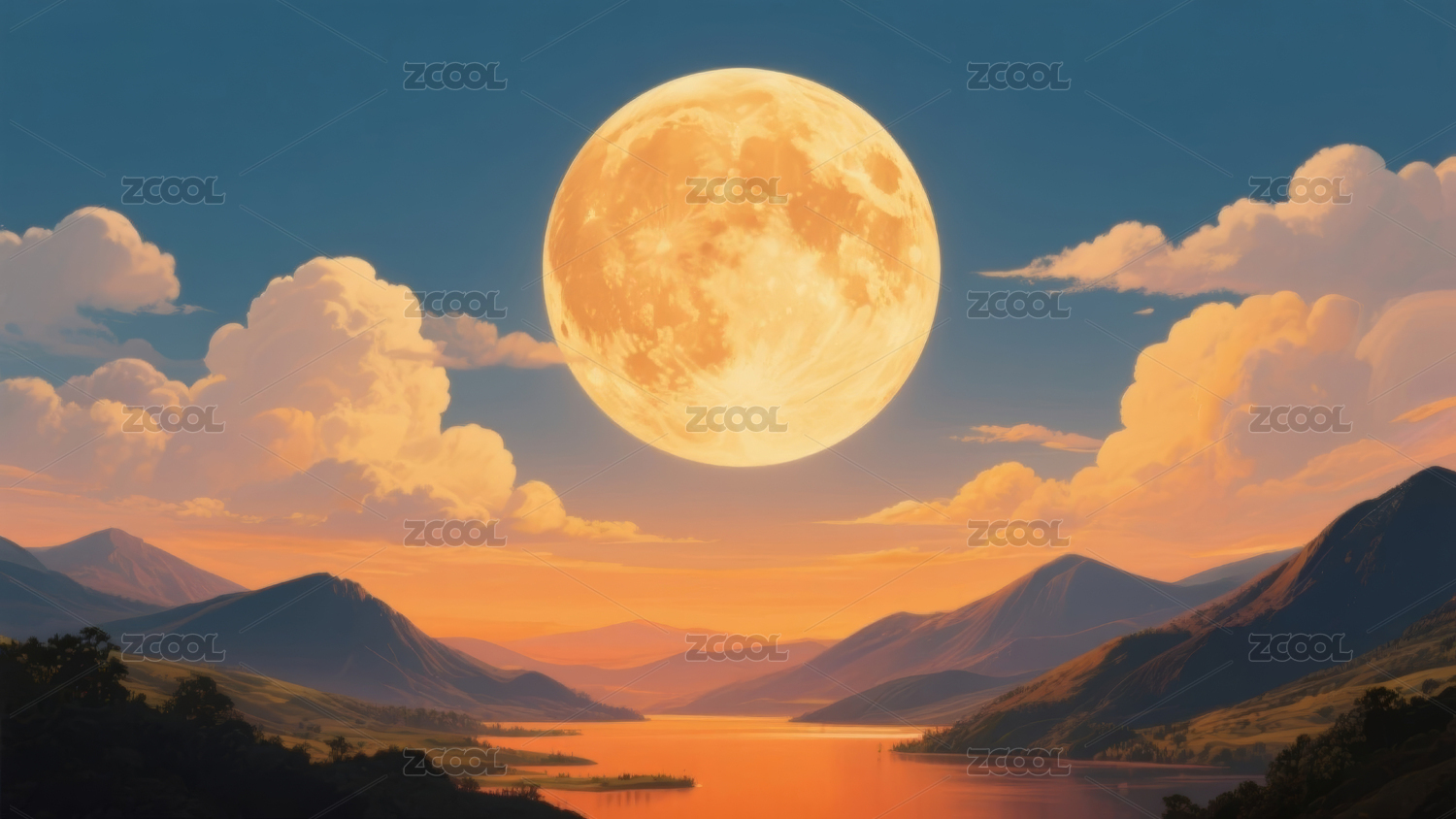 AIGCFG,中式,中国风,国潮风,插画,卡通,月亮,风景,节日,中秋节