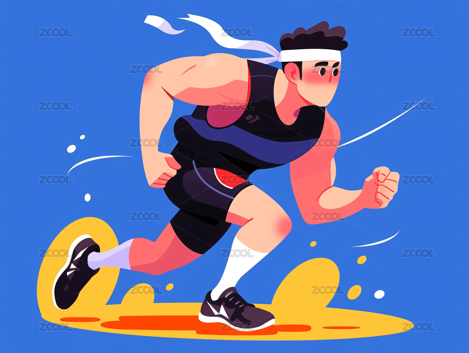 人物跑步运动插画,运动员训练马拉松冲刺海