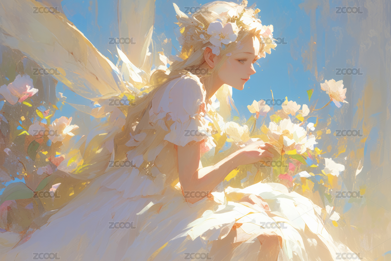 AIGCFG02,森林,自然,风景,精灵,少女,卡通,插画