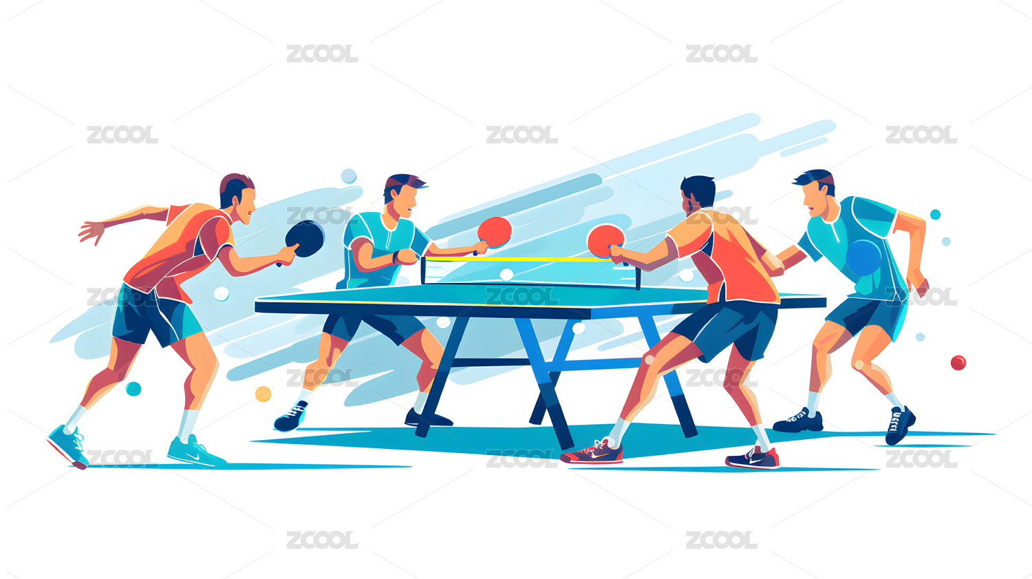 奥运会比赛乒乓球双人两男两女混打线条插画
