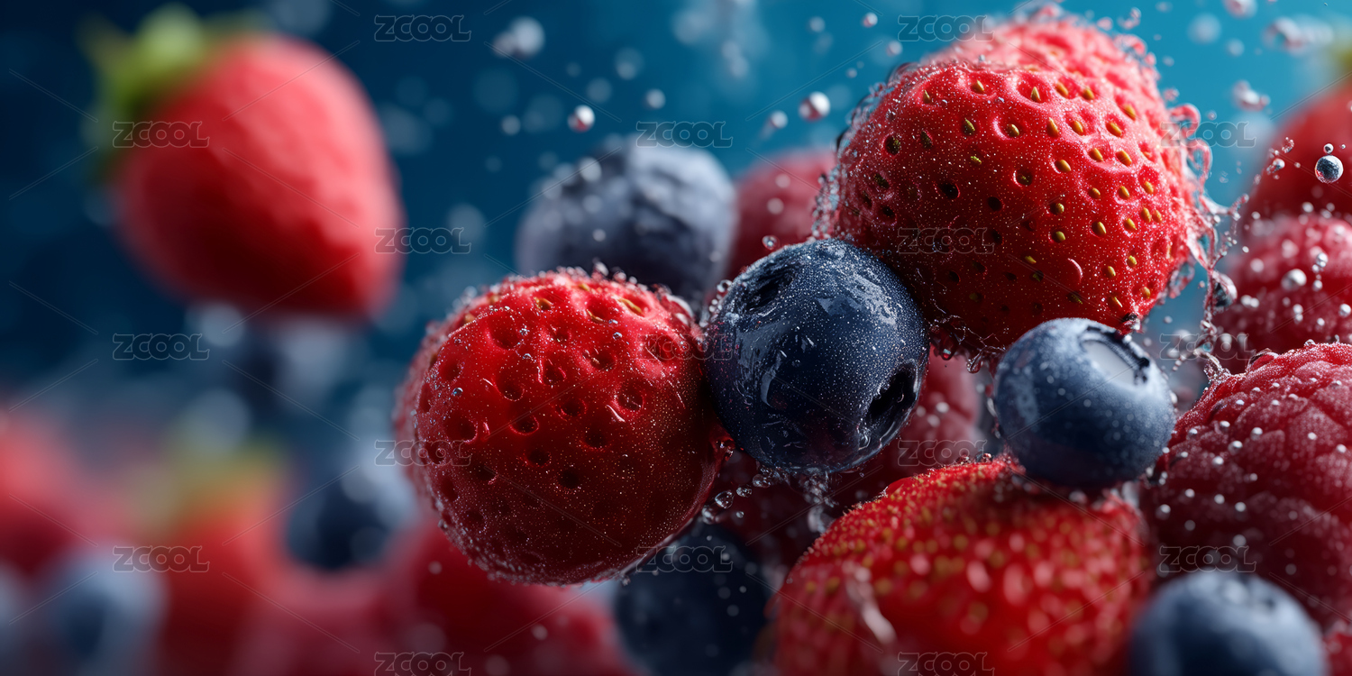 莓果在水中飞溅的瞬间