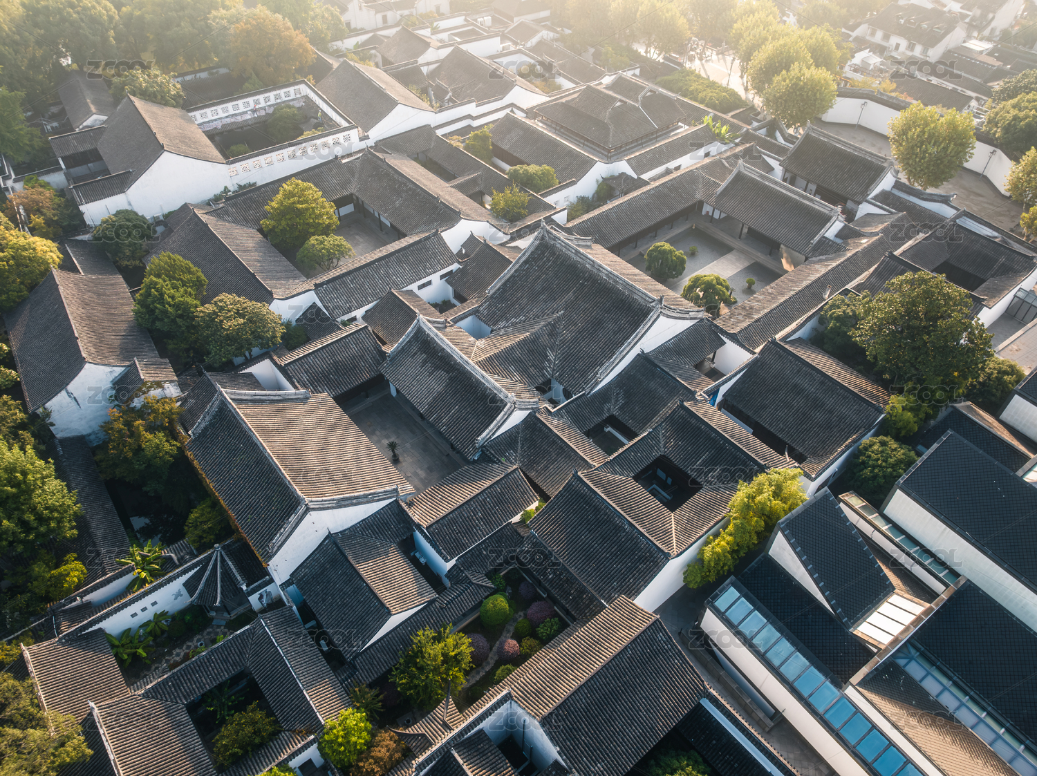 中国江苏省苏州博物馆清晨航拍