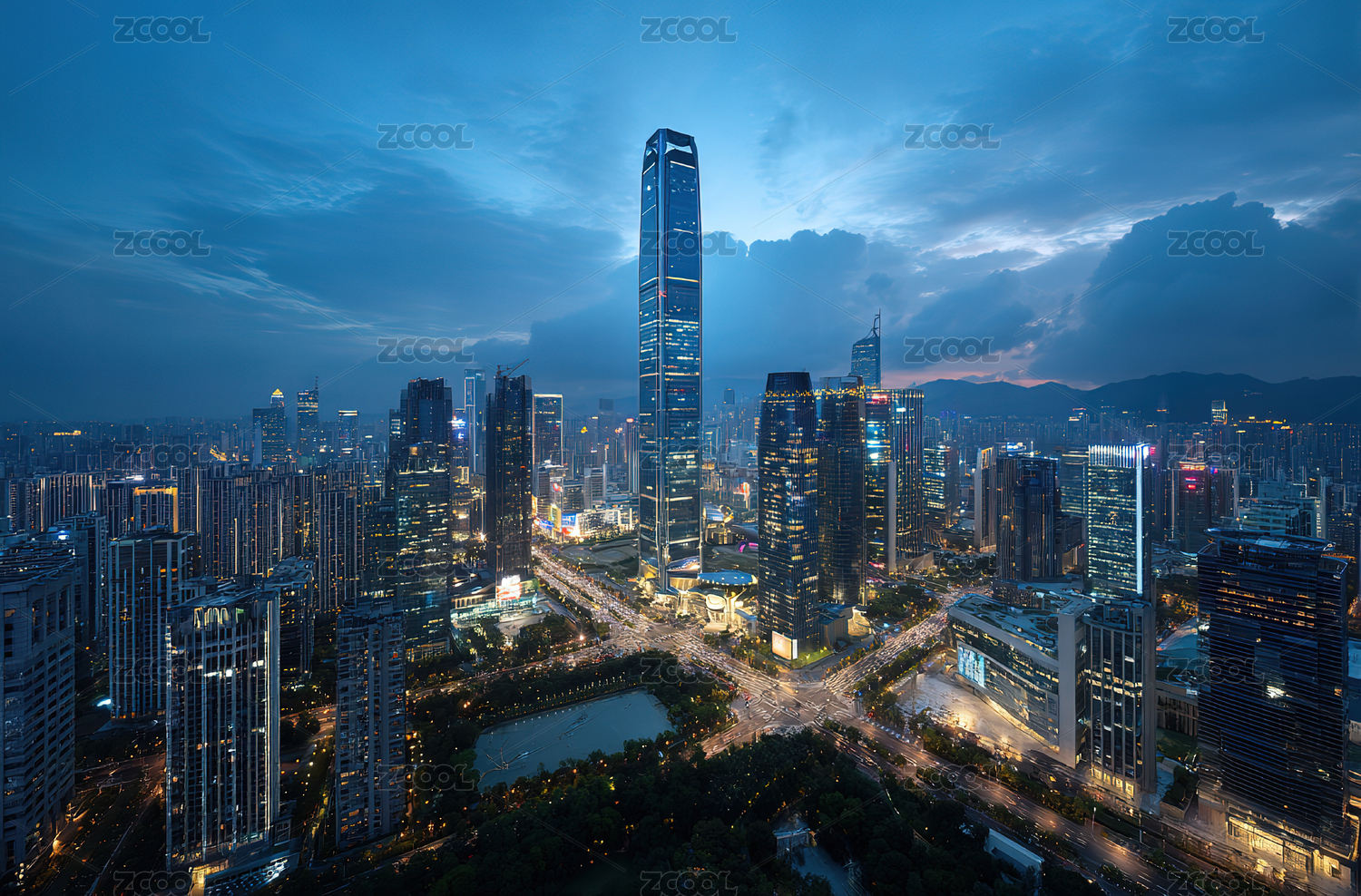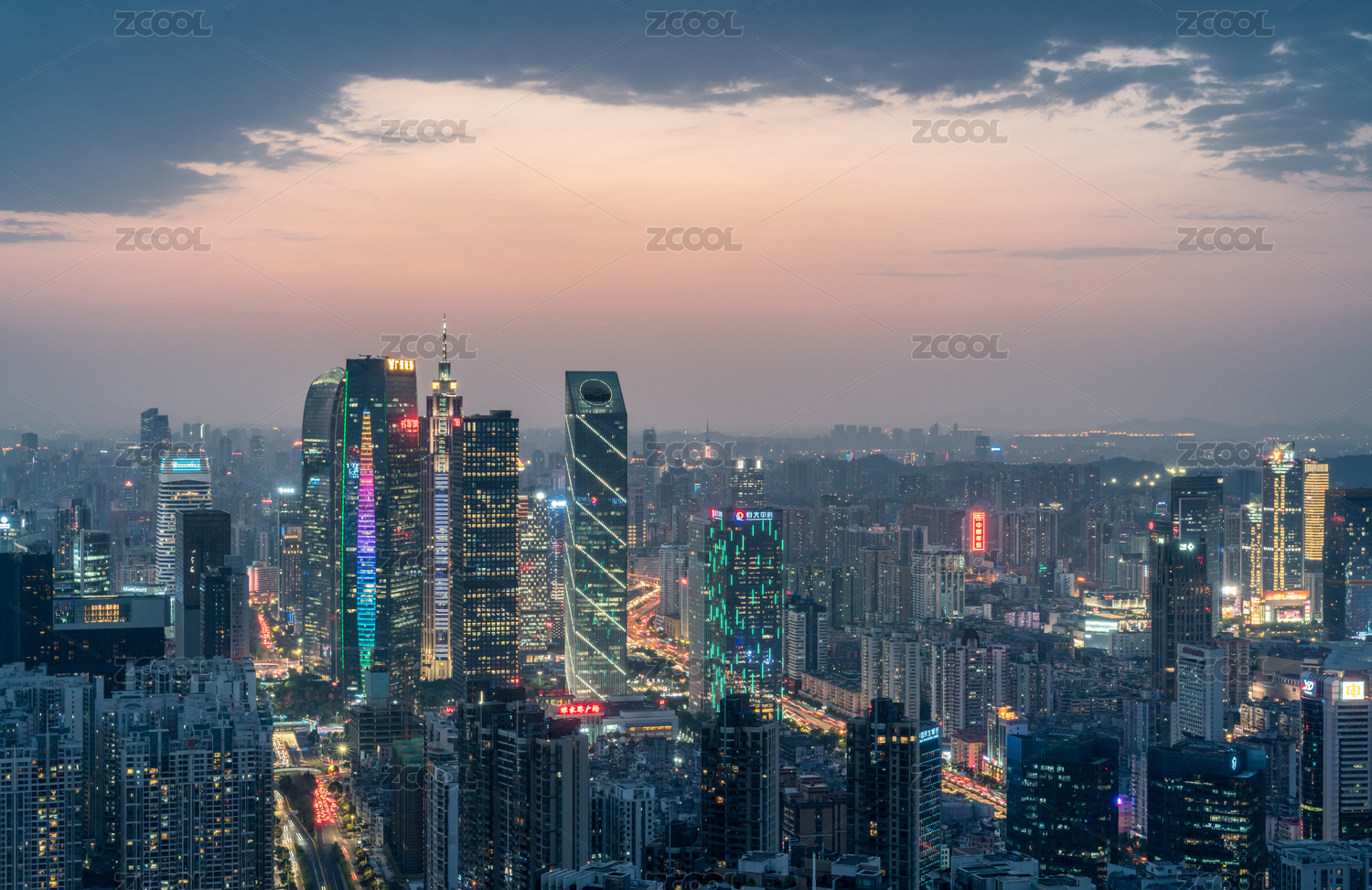 航拍视角,广州,珠江新城,无人,城市,都市风光,照亮,城市天际线,摩天大楼,高视角