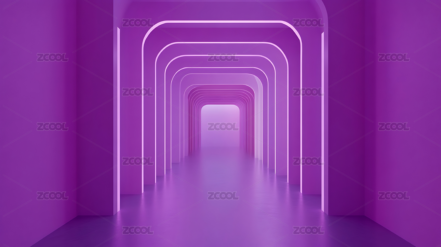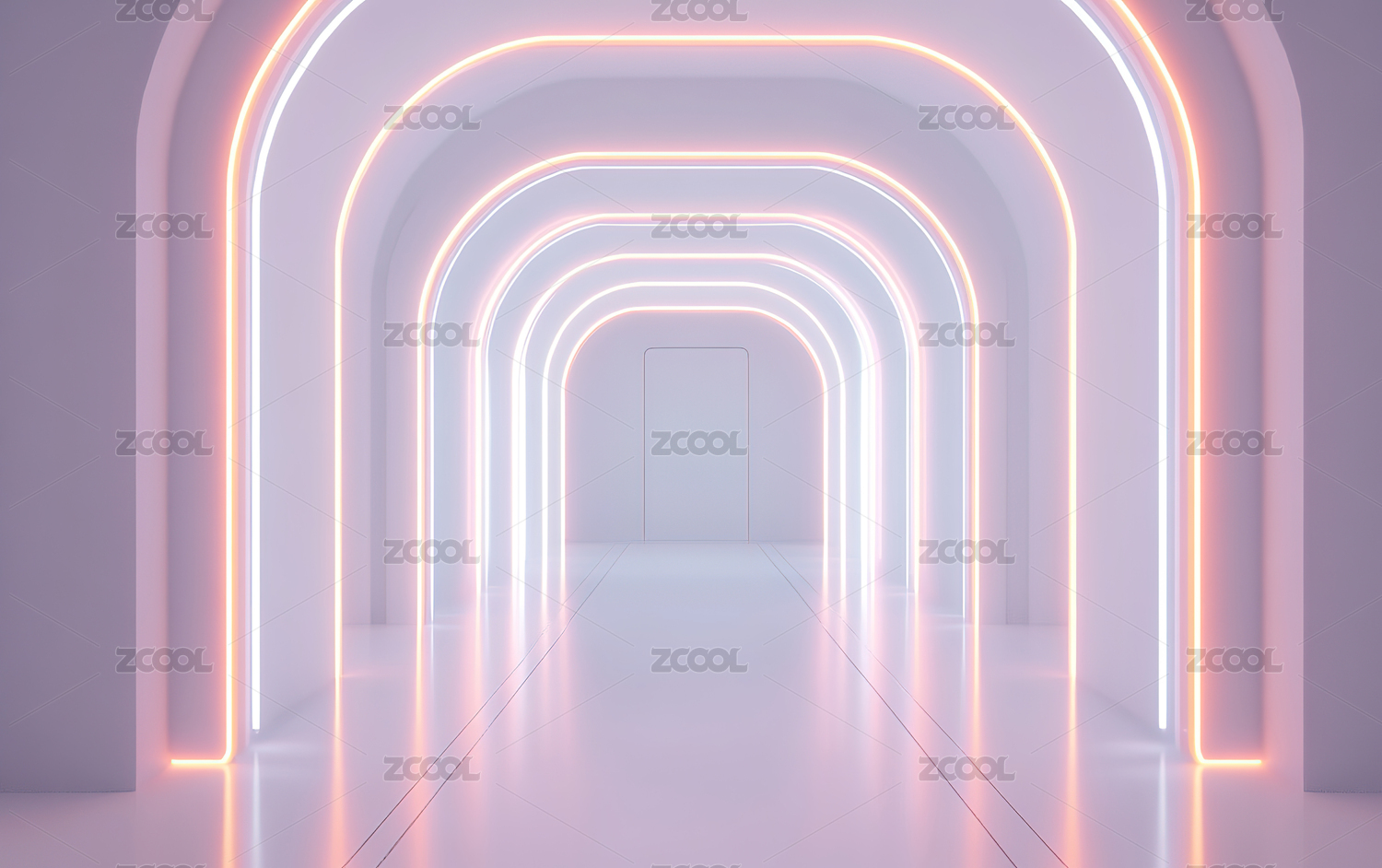 3D渲染科幻几何隧道霓虹灯线概念插图