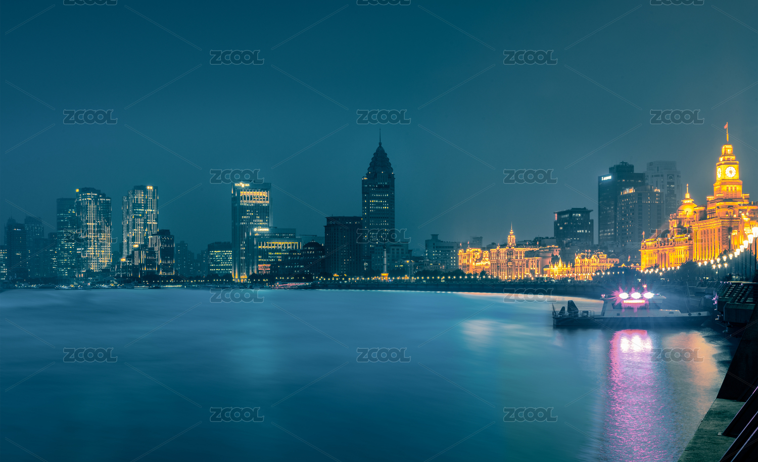 凌晨时分无人的上海外滩和陆家嘴夜景