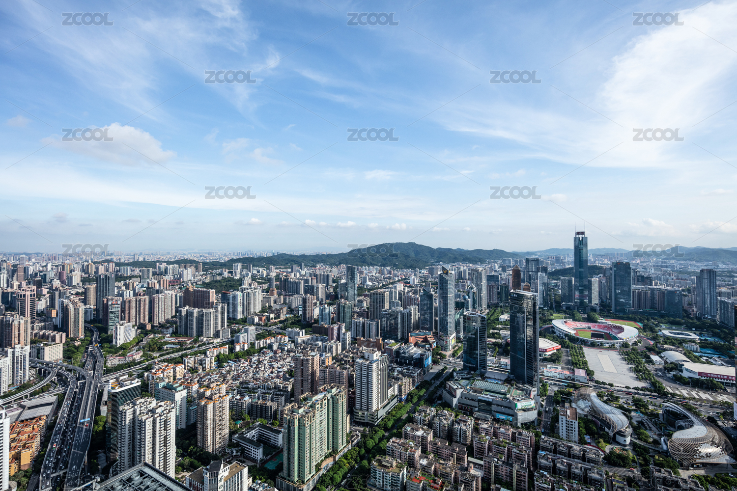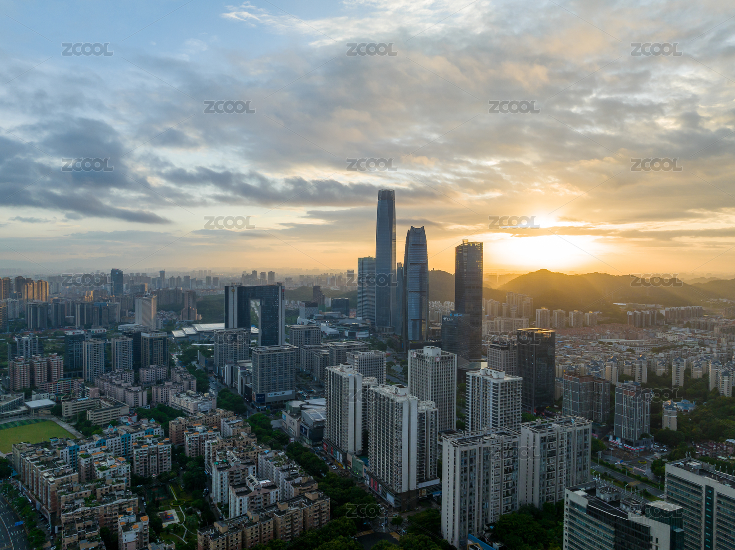 中国深圳傍晚时罗湖与南山的高楼天际线风光