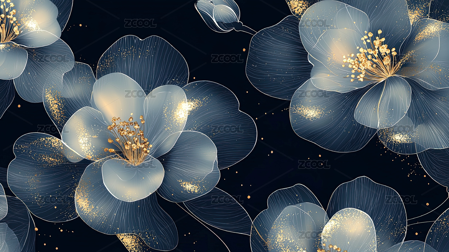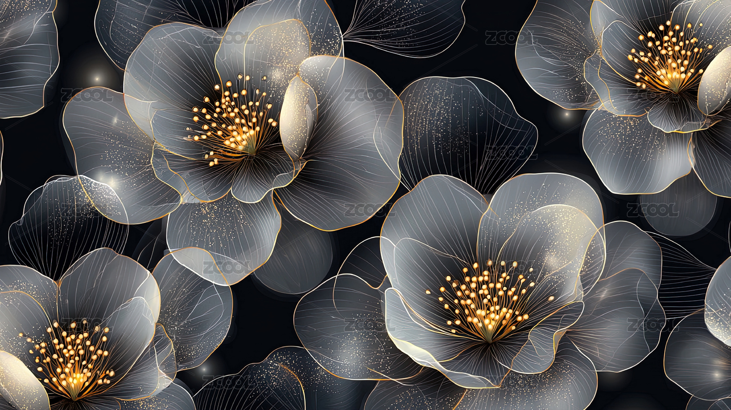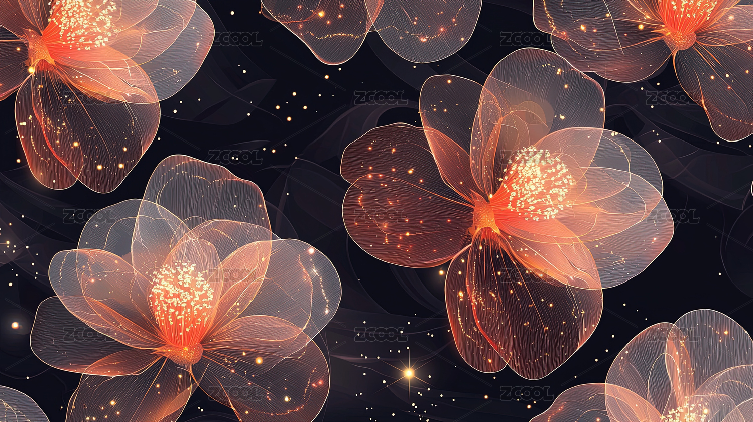 全息透视植物花卉图案四方连续循环拼接背景