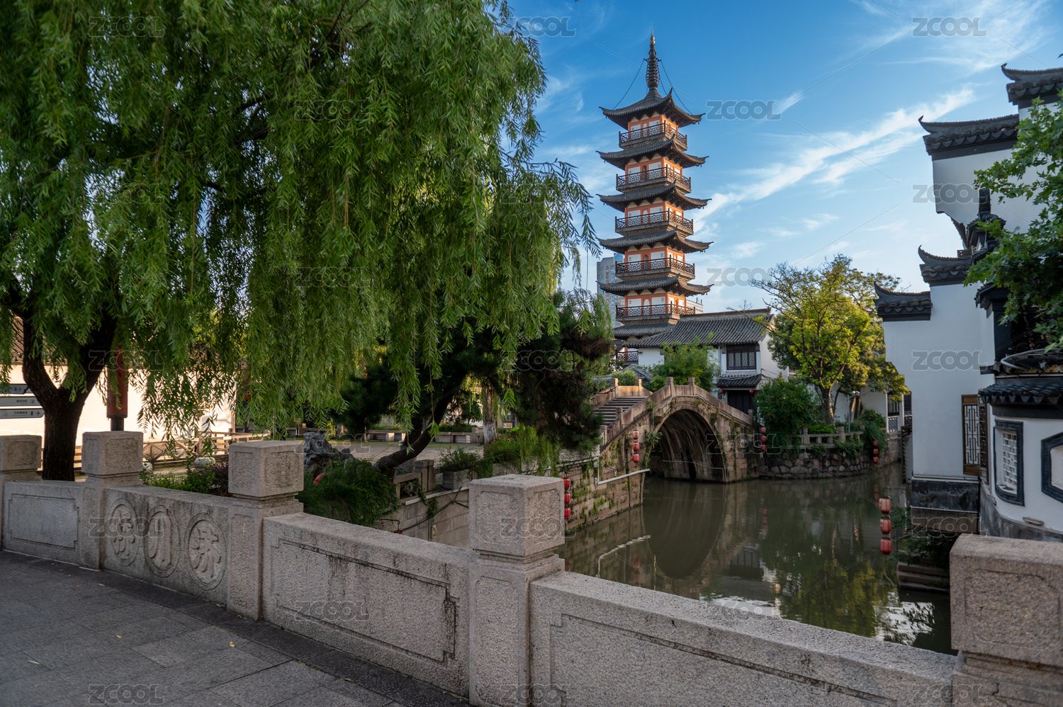 上海,嘉定,州桥老街,法华塔,古塔,竖图,道路,阳光,夕阳,云彩