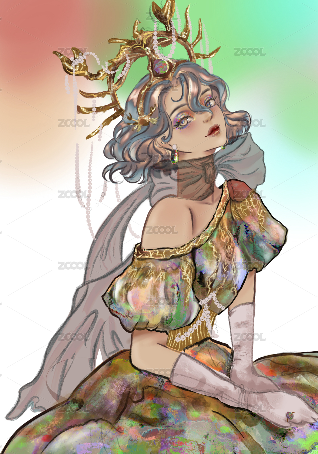 华丽礼服中的金色长发女子