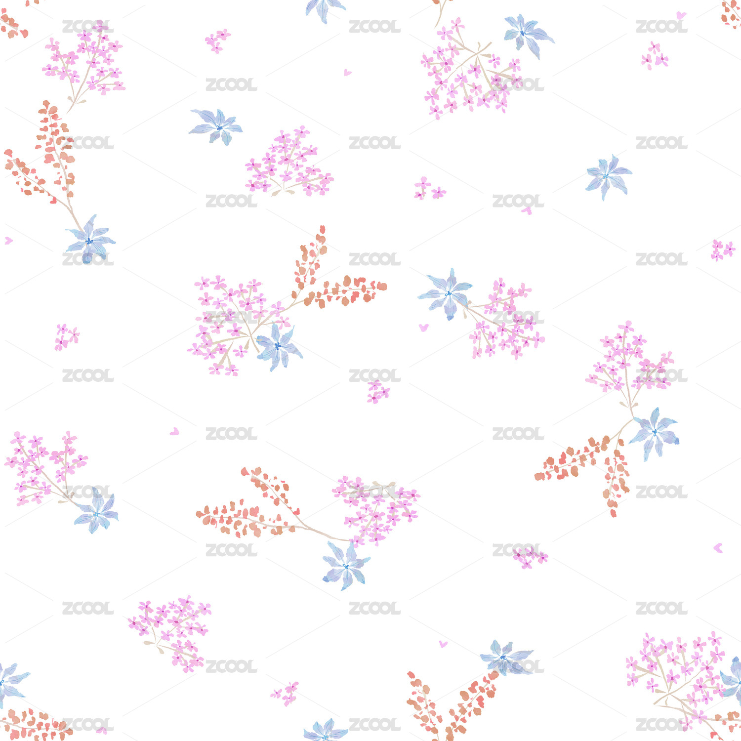 无缝水彩碎花印花四方连续插画