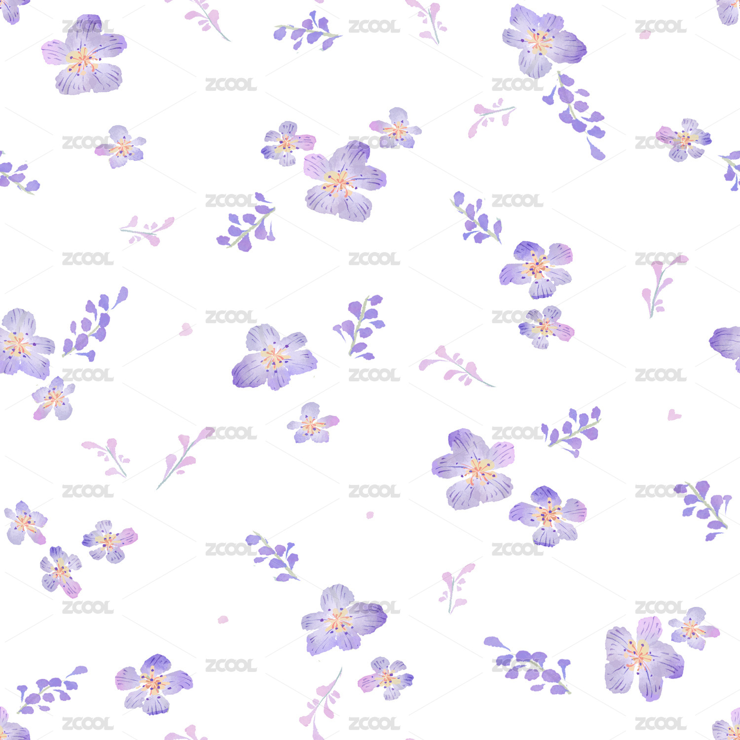 淡紫色小碎花四方连续无缝图案