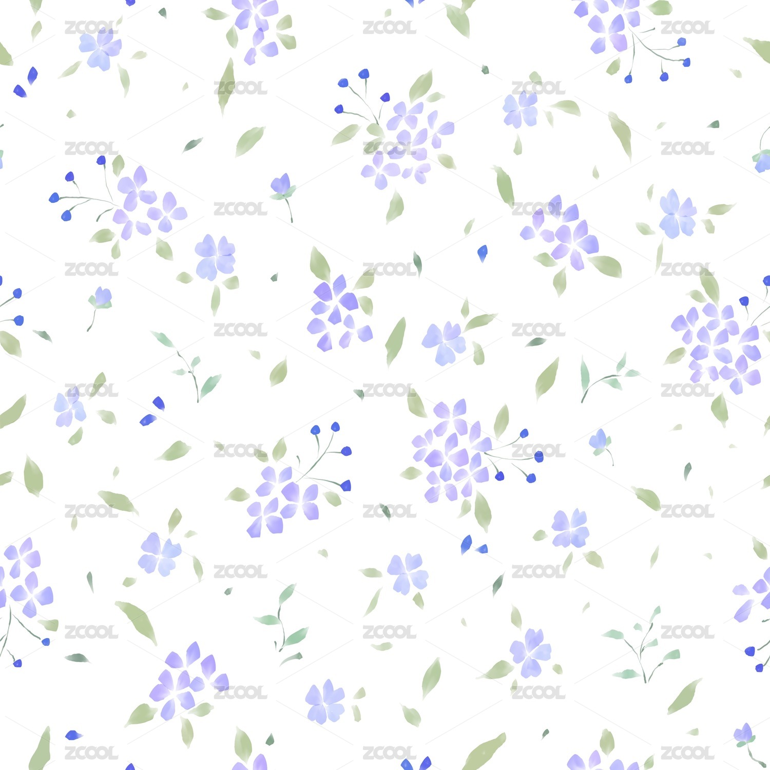 蓝紫色小清新碎花四方连续无缝图案