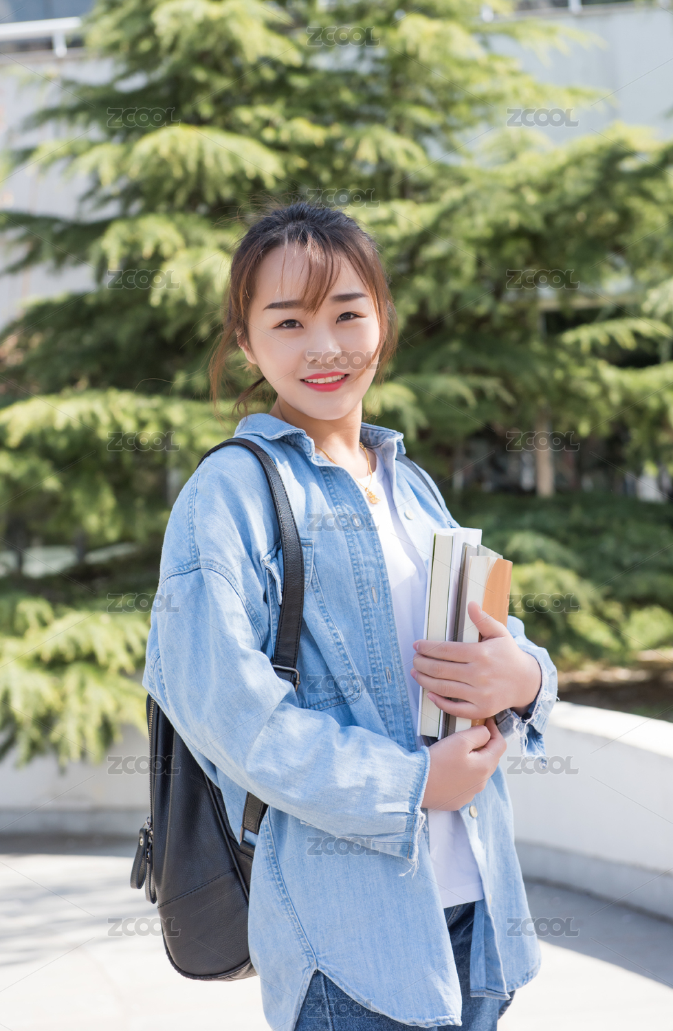 女大学生拿着书本在户外