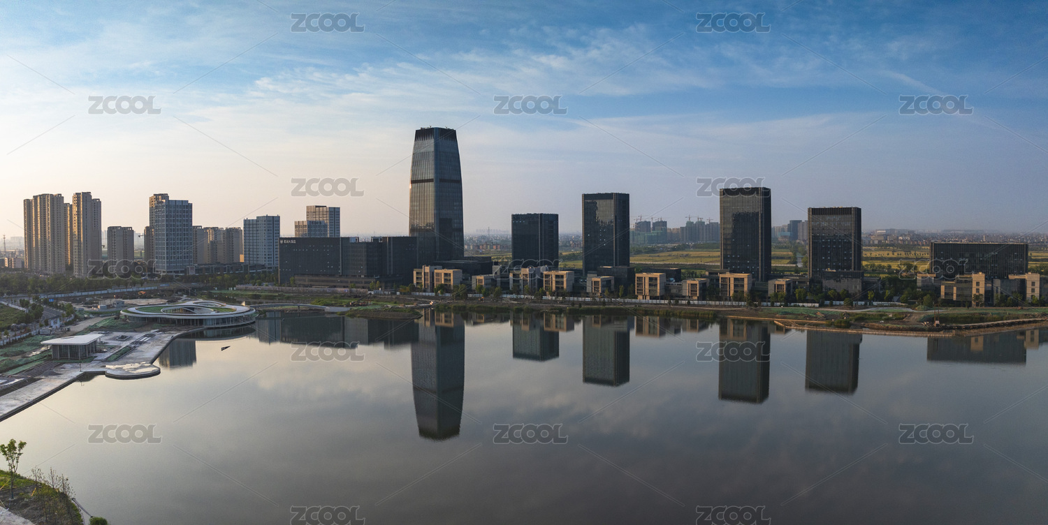 浙江杭州钱塘区东沙湖畔城市建筑风景