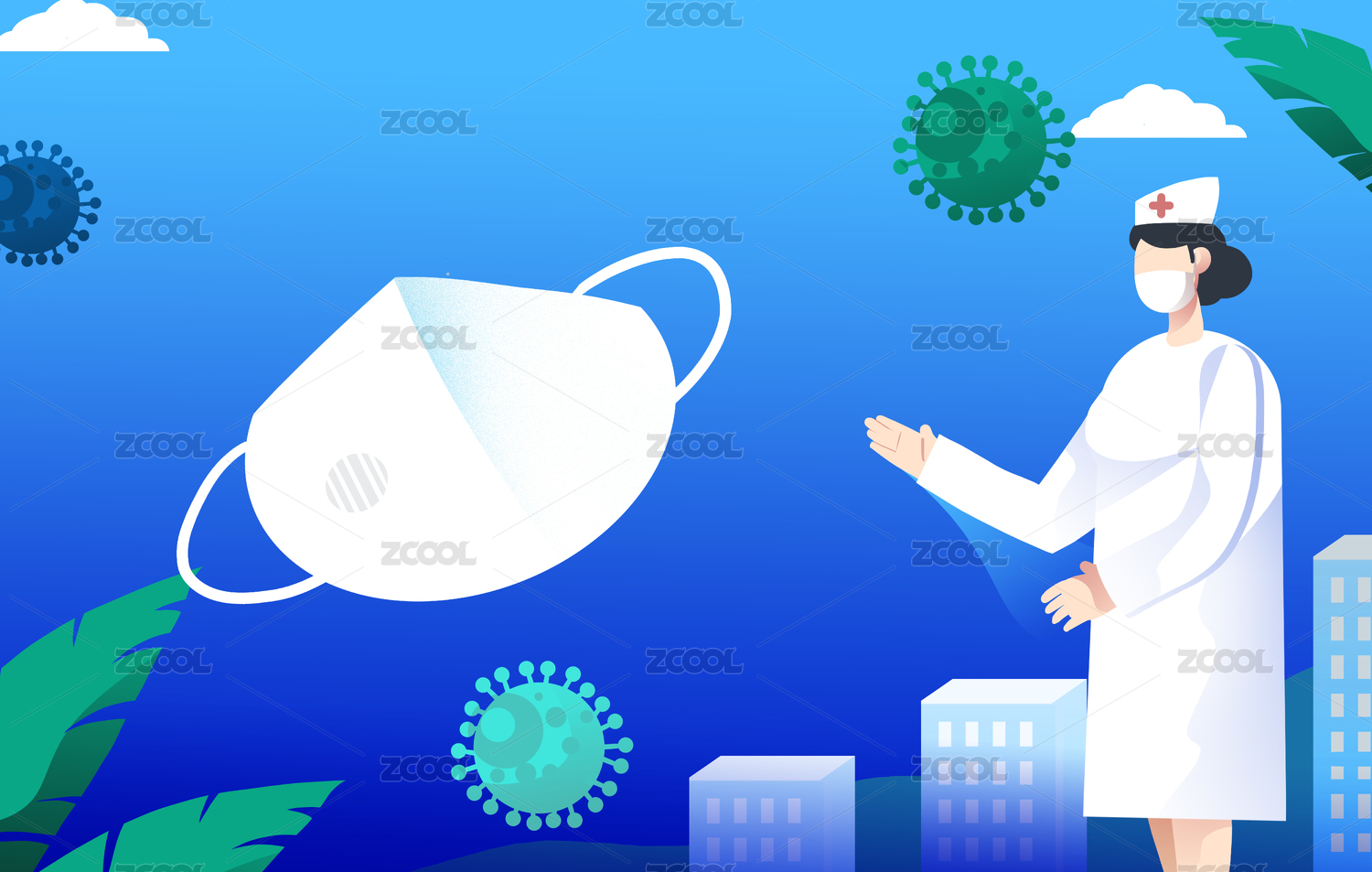 疫情医疗抗疫防护矢量插画