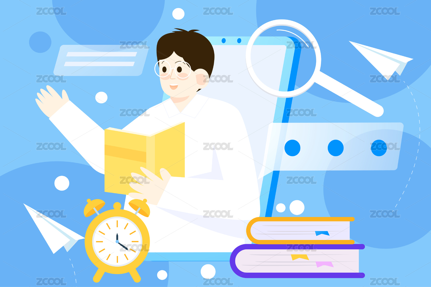 卡通春季成人学习教育工作职业上班矢量插画