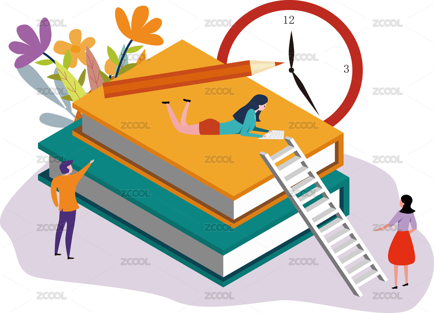 读书,世界读书日,等距,轴测图,阅读,教师节,老师,学生,人物,书本