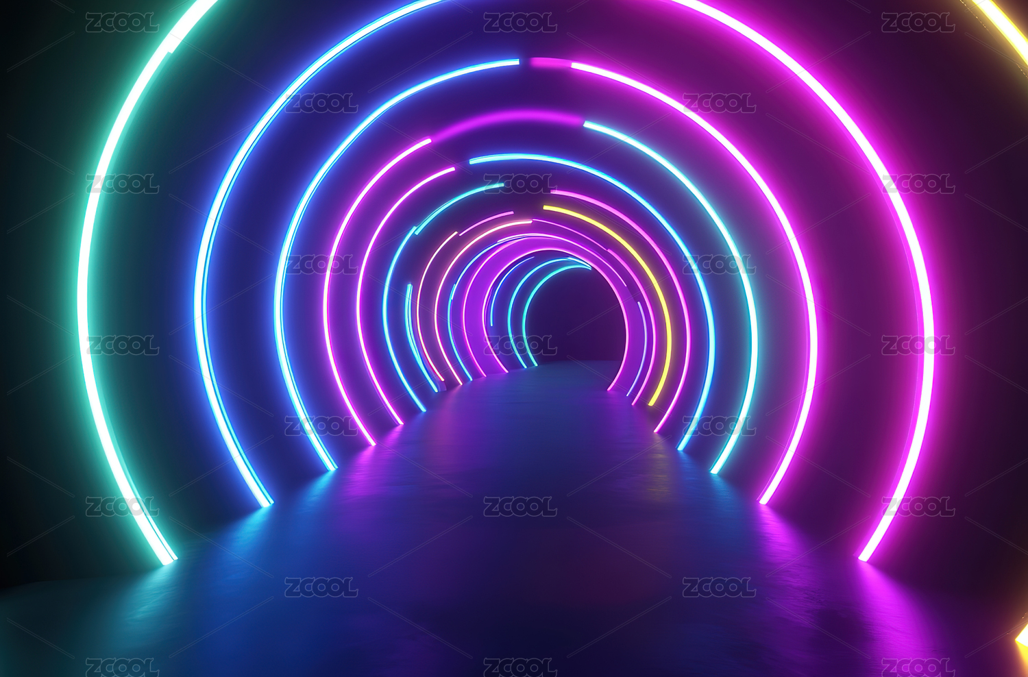 抽象霓虹灯发光几何线条3D渲染商务背景