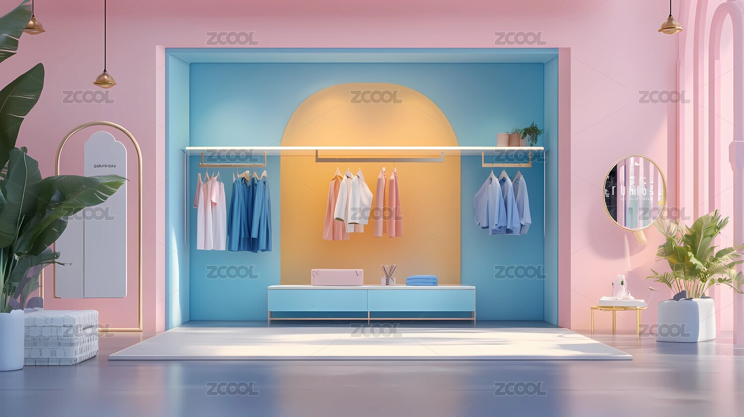 室内设计,植物,白色货架, 时尚, 宁静,简约,衣帽间,服装,毛衣,鞋子