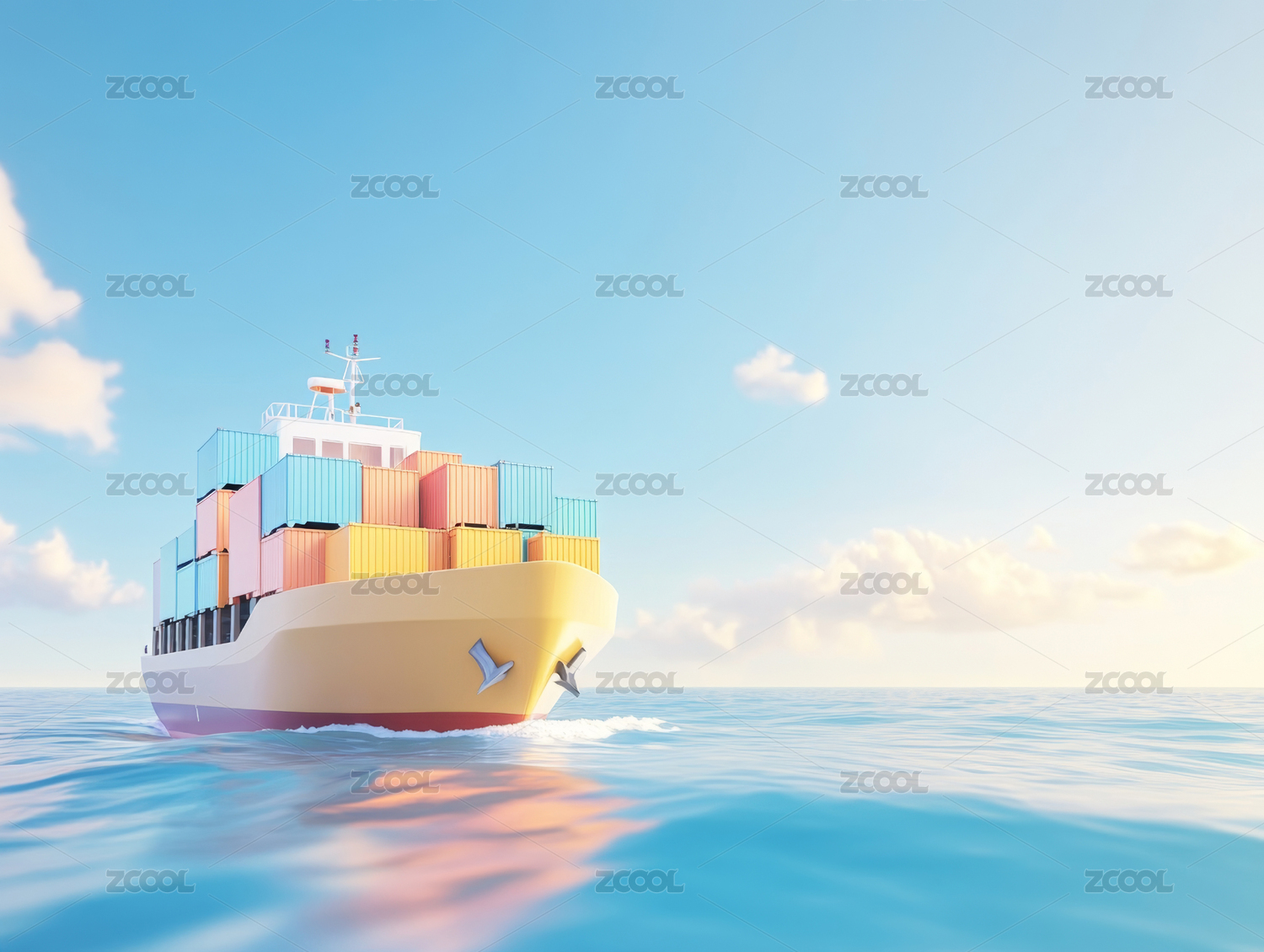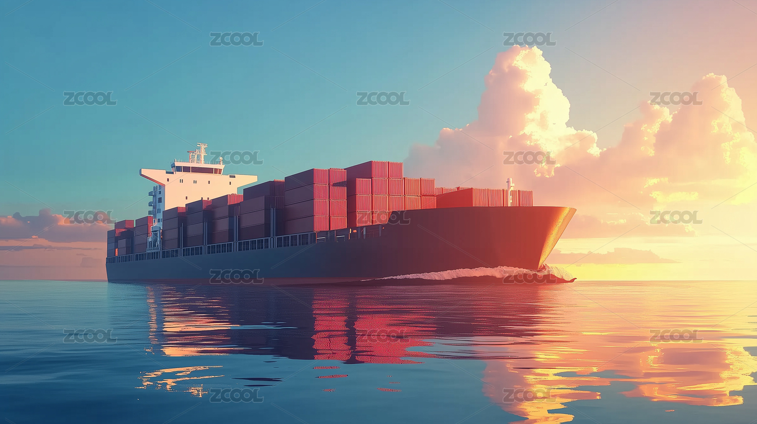 大海轮船轮渡货运商业运输船舶航海出口插画