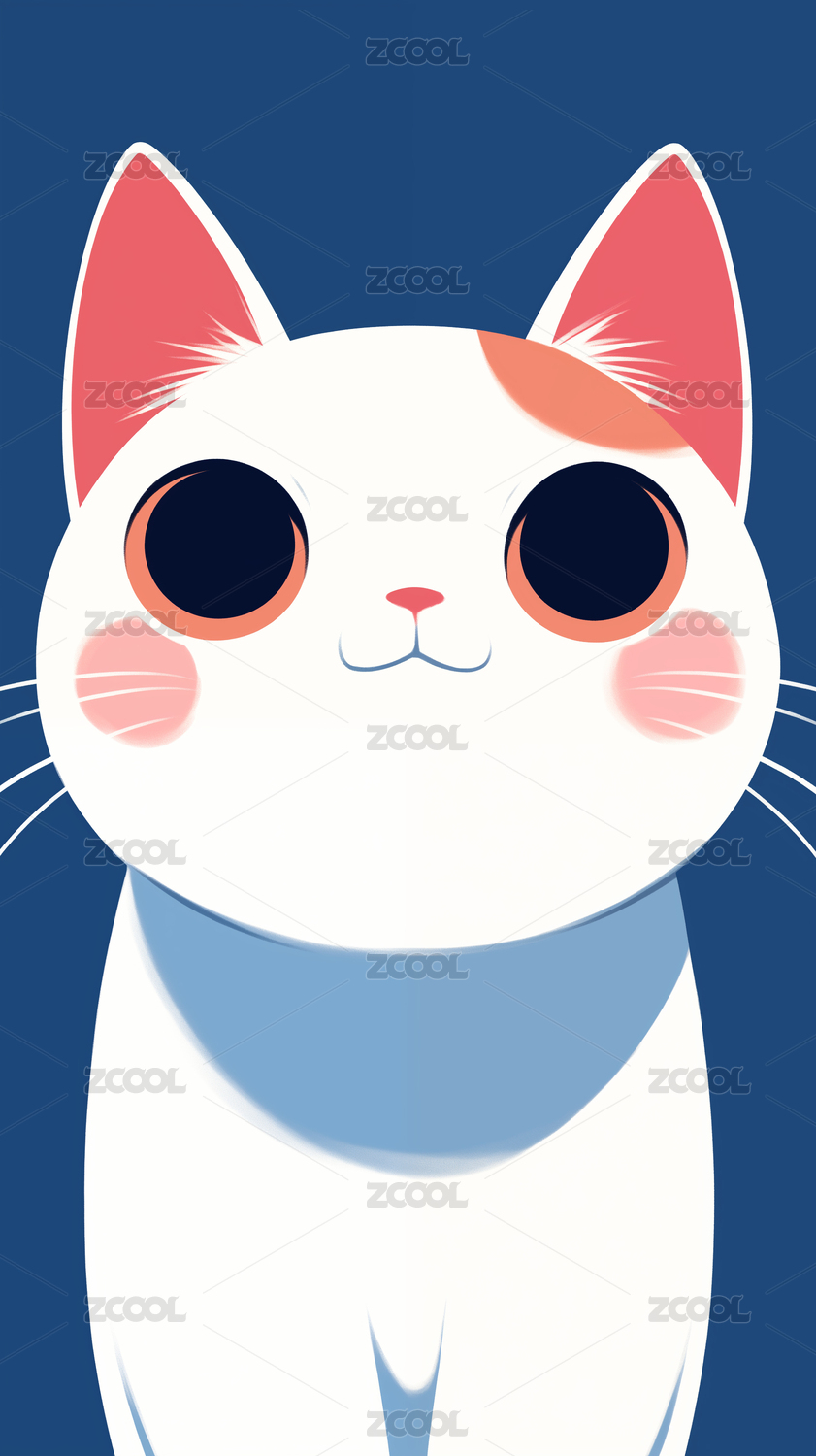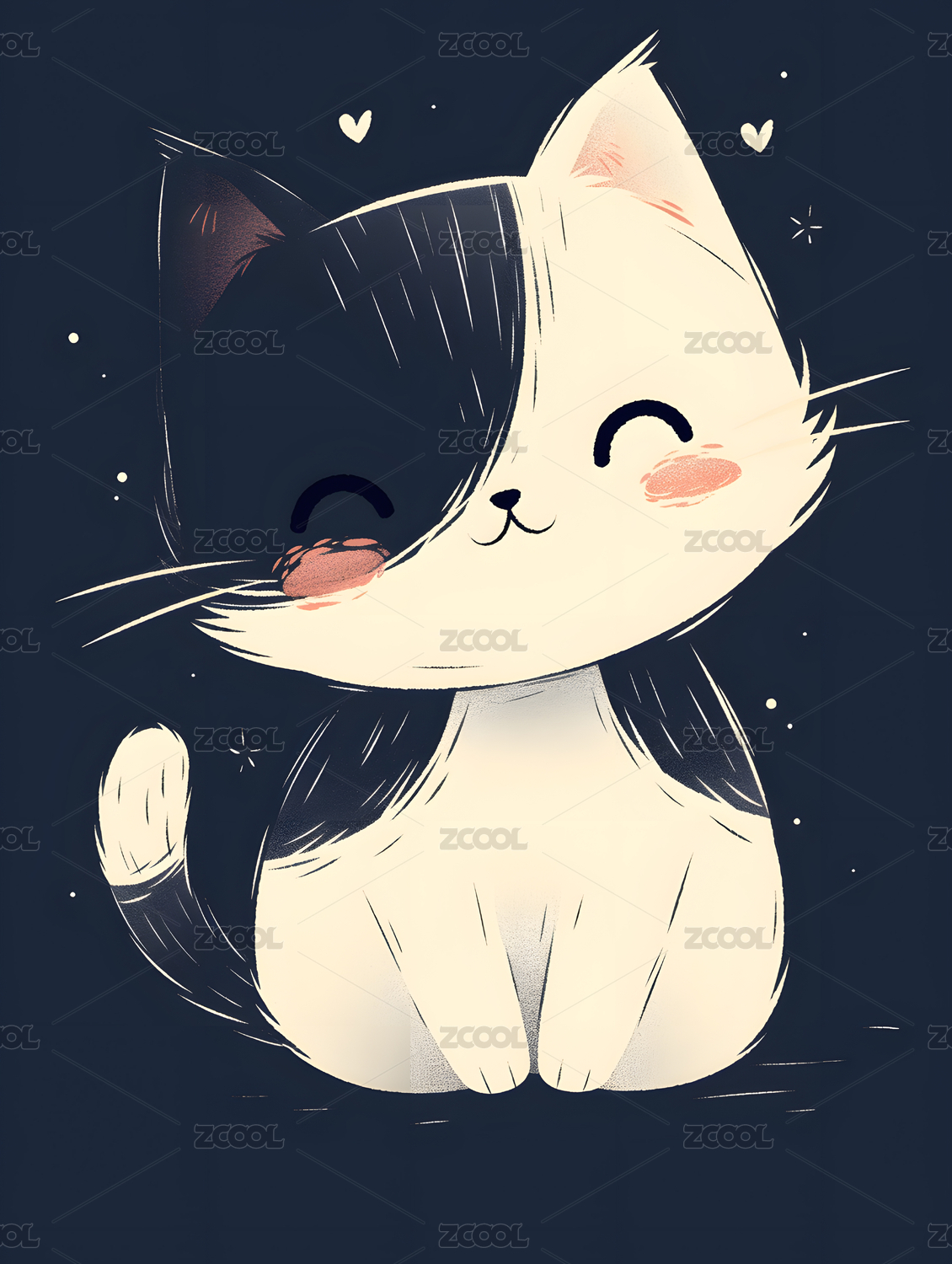 卡通手绘线条感极简风小猫微笑表情壁纸插画