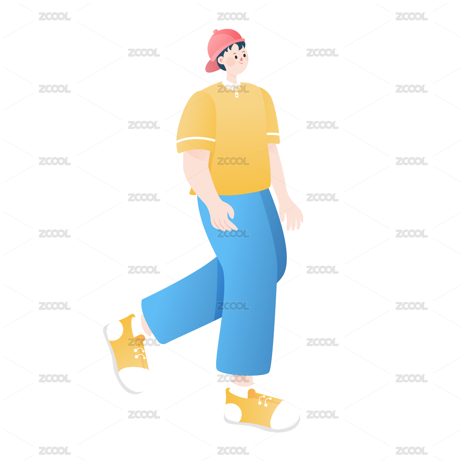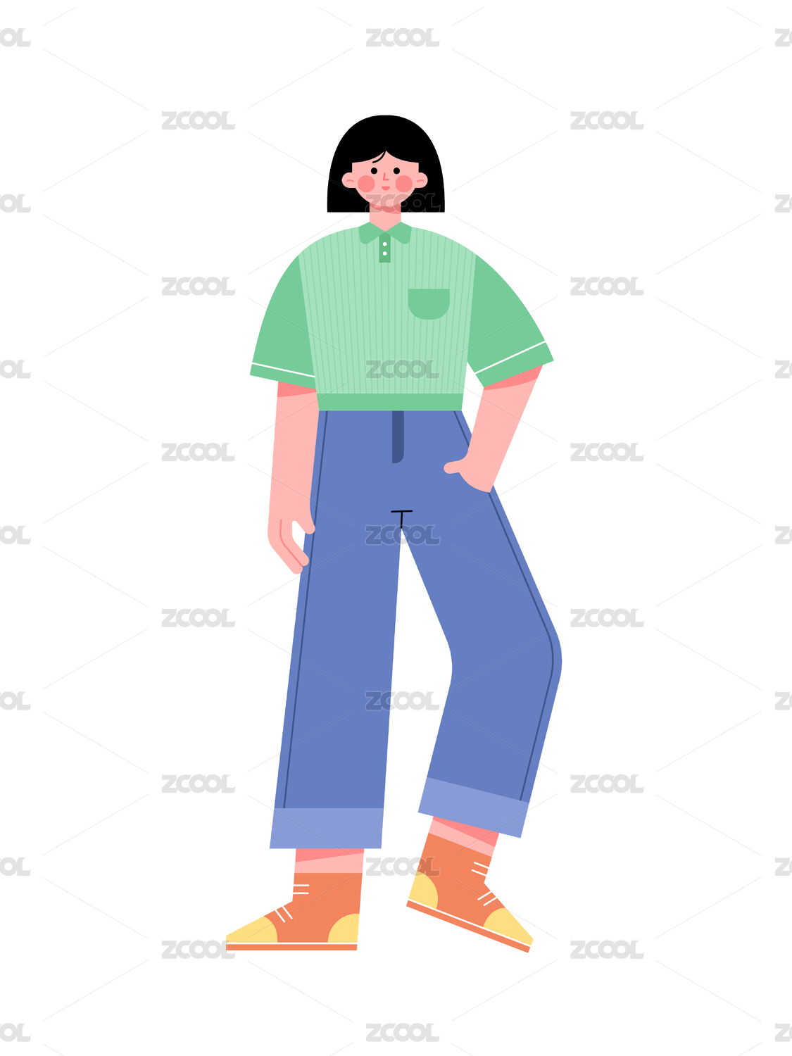 扁平风描边小清新少黄色裤子女人物