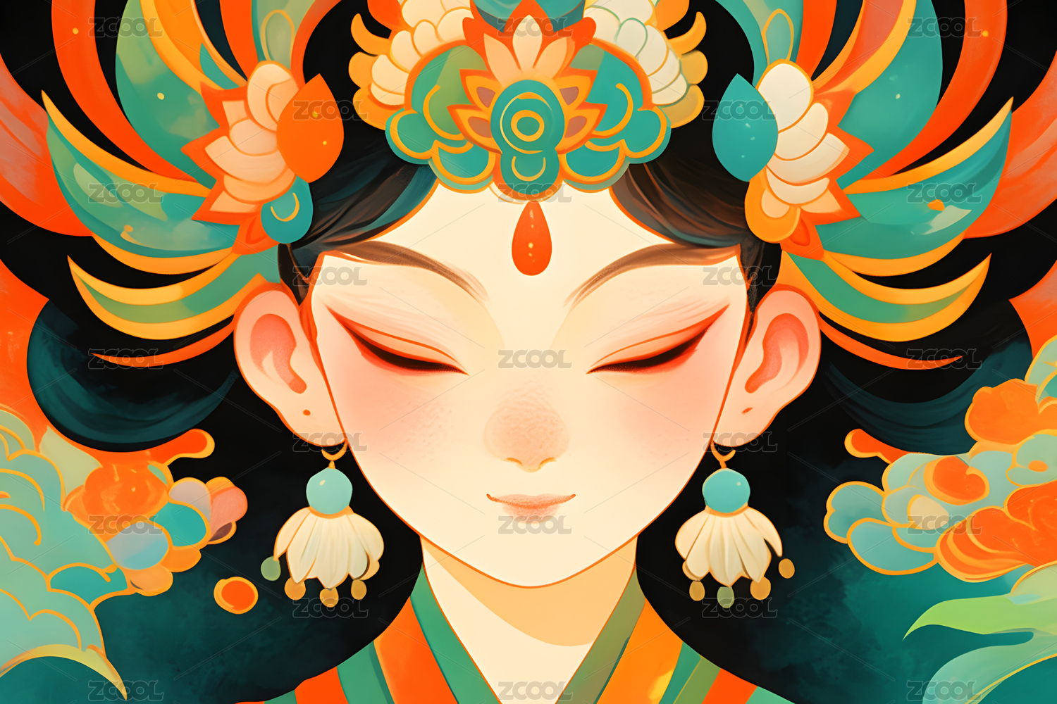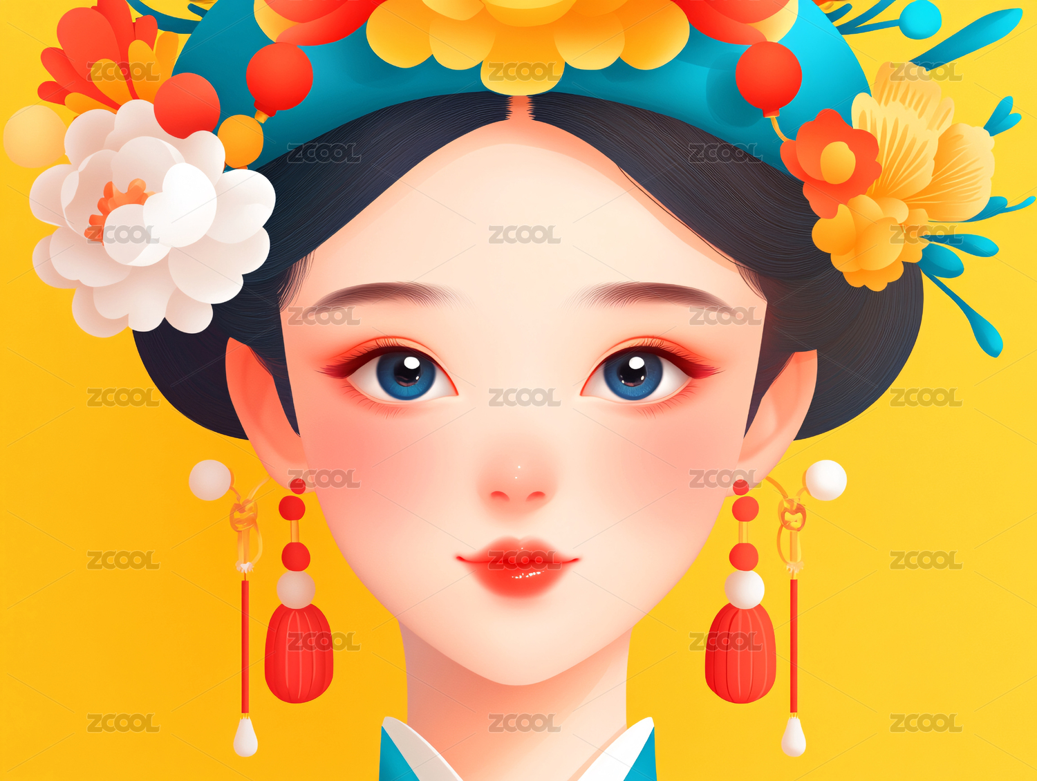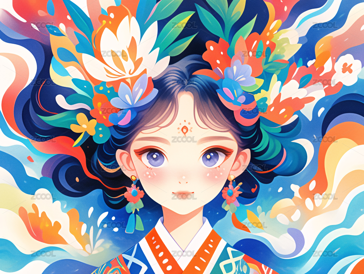 女孩,扁平,卡通,少数民族,女人,表情,插图,可爱,女性,插画