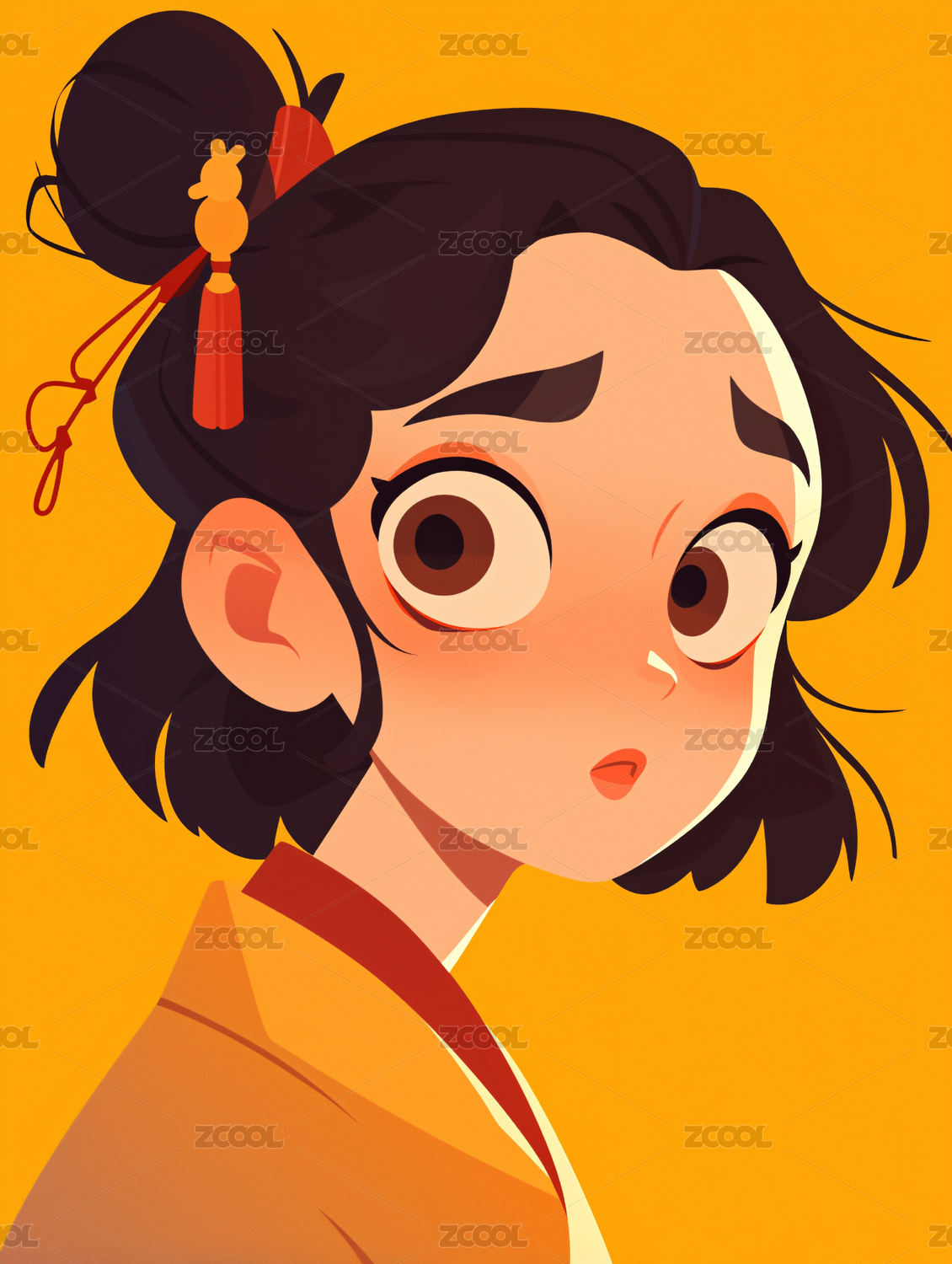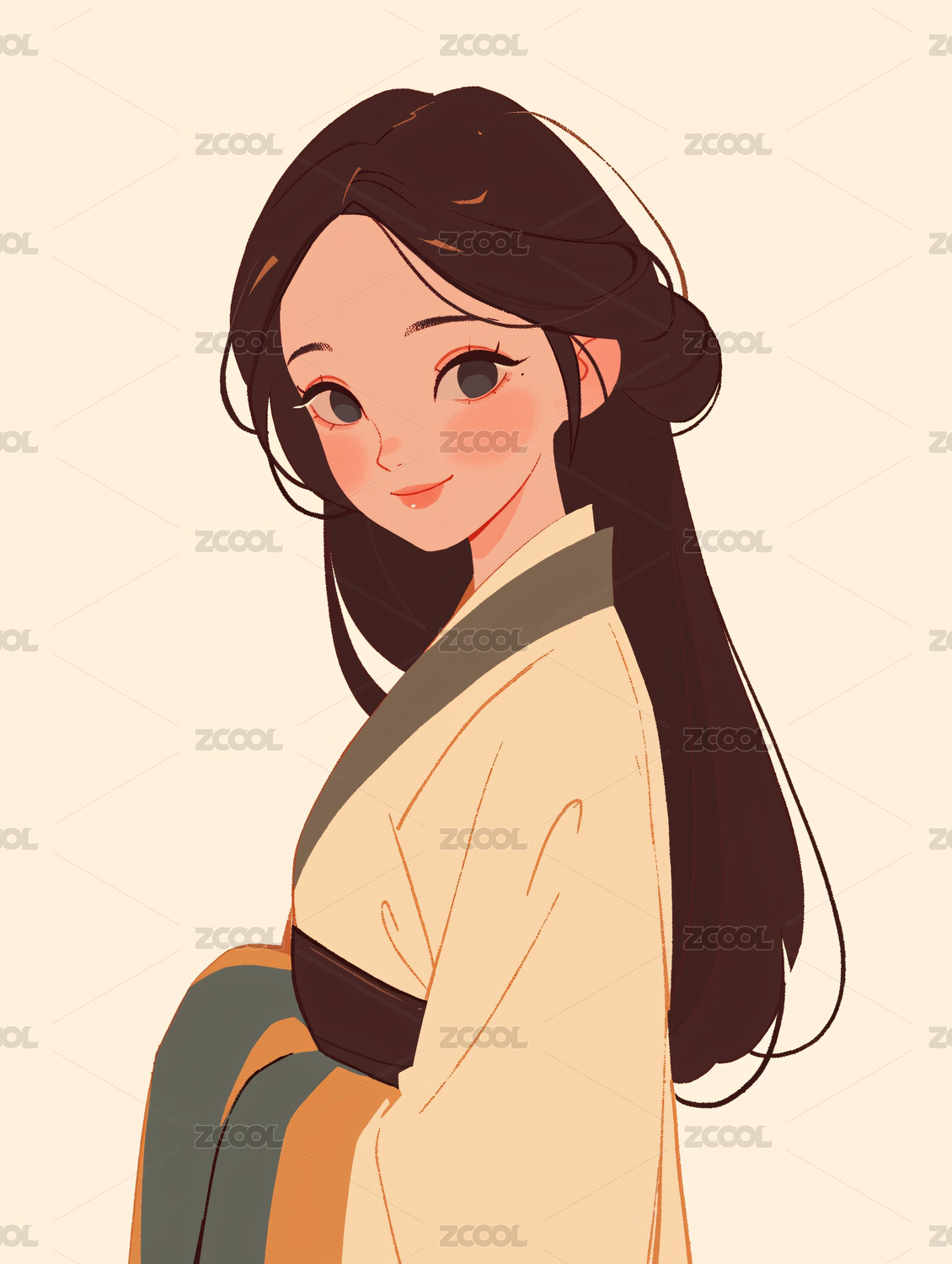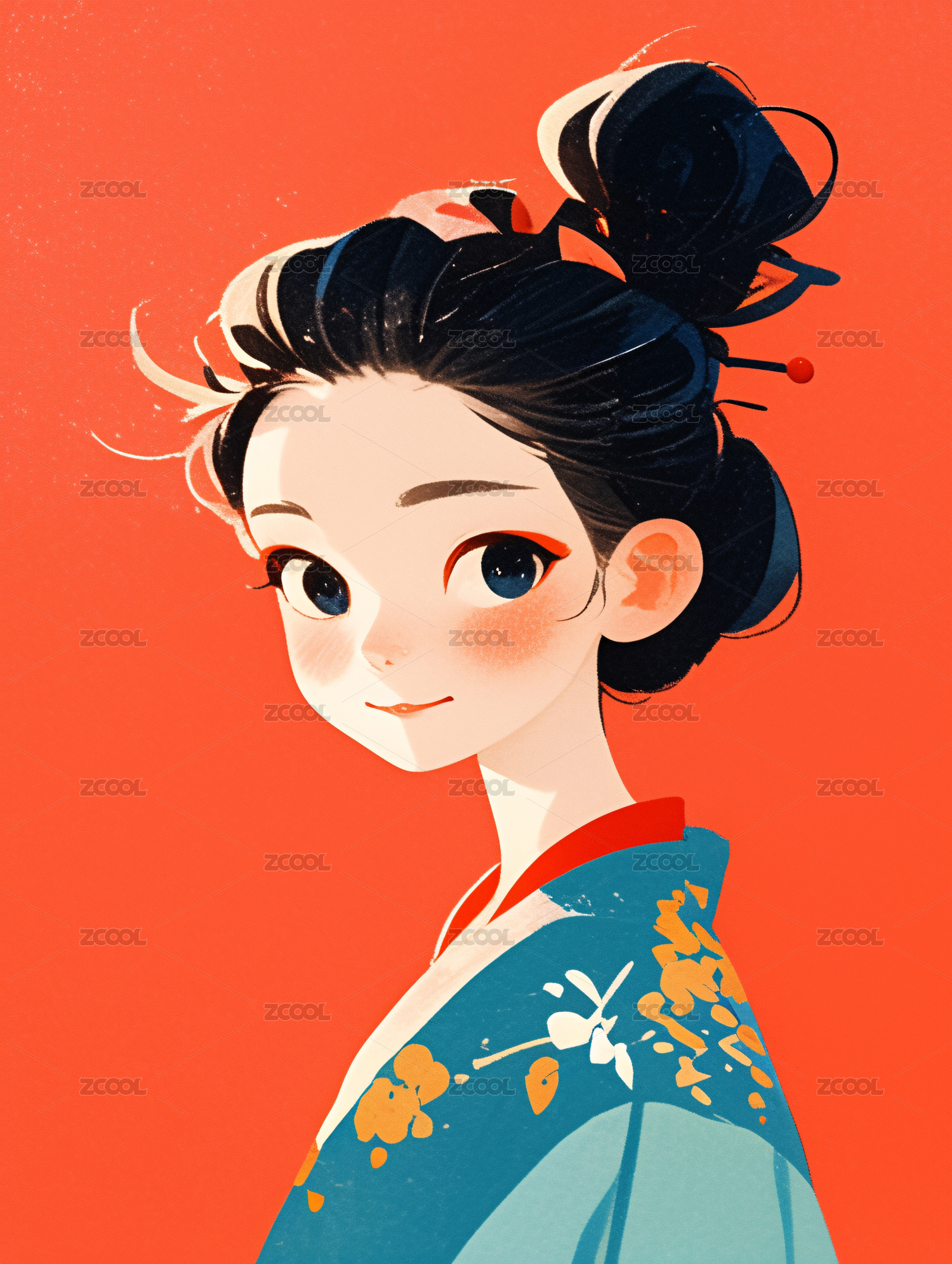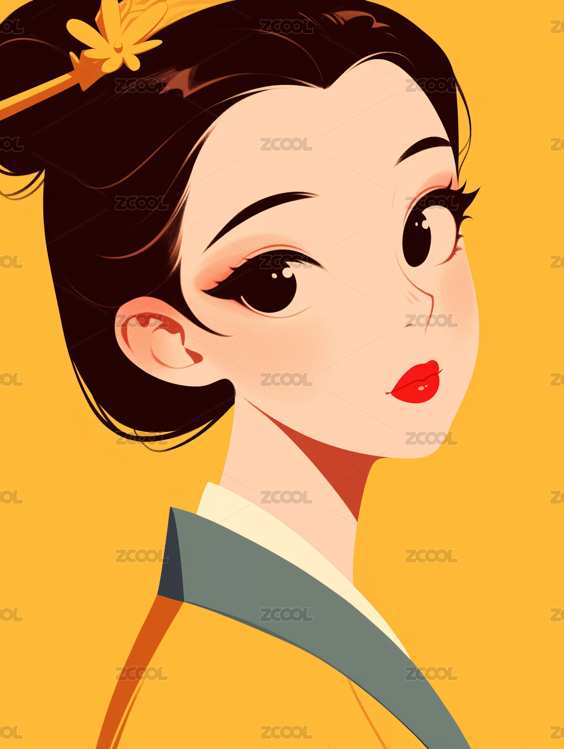 古风美女肖像的简约女孩卡通插画
