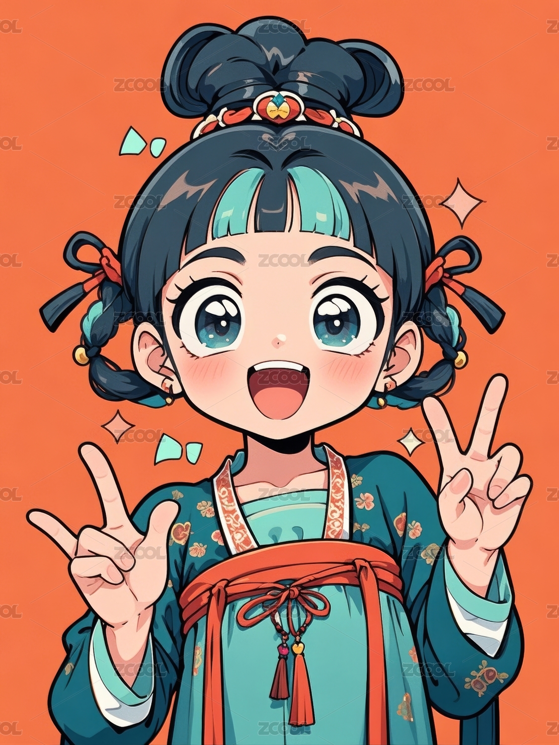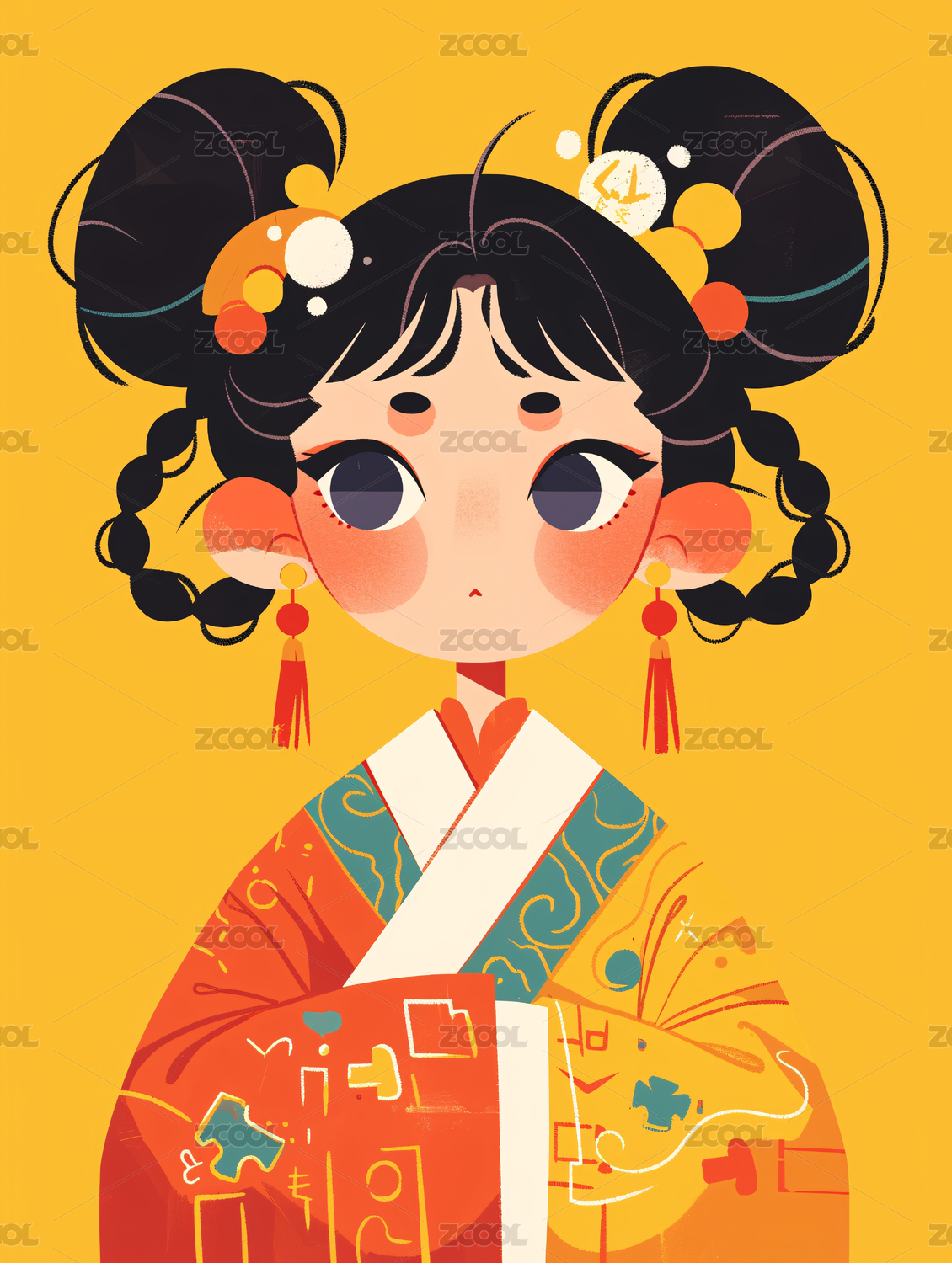 身穿传统服饰的卡通人物