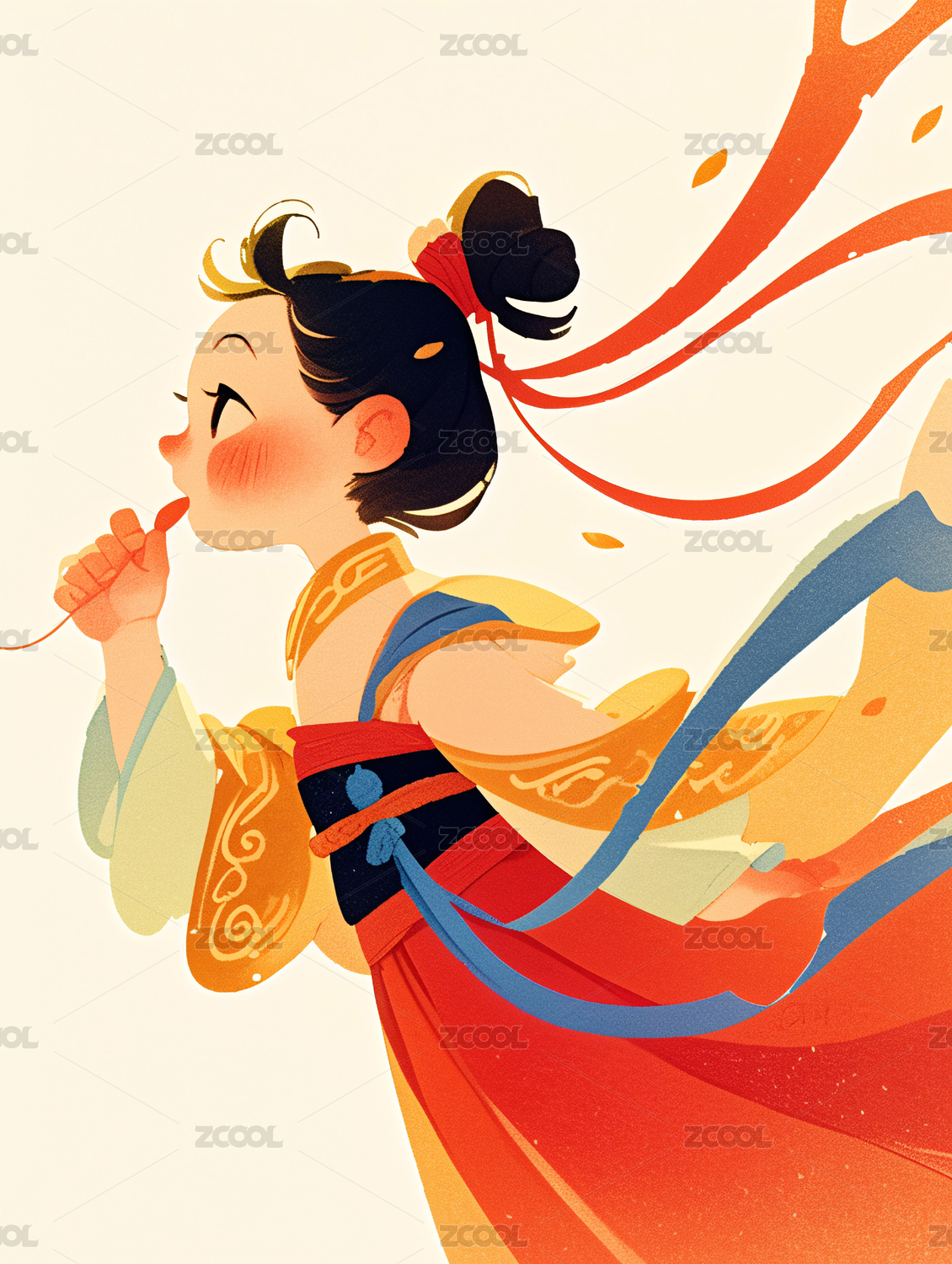 唯美卡通古风人物节日插图