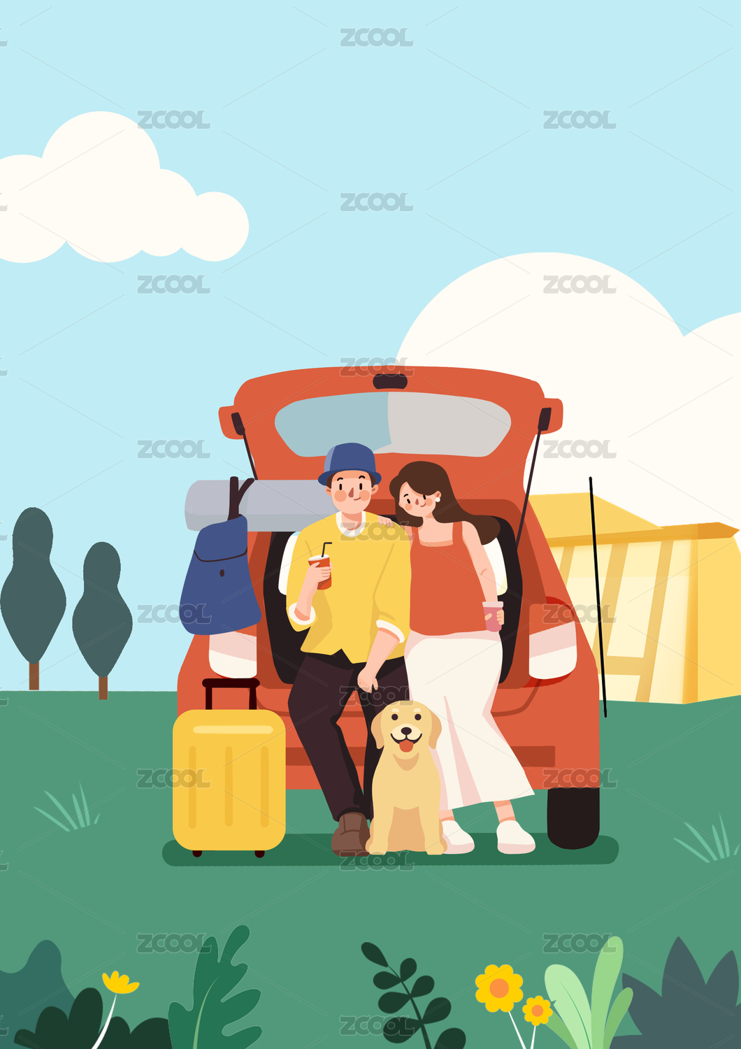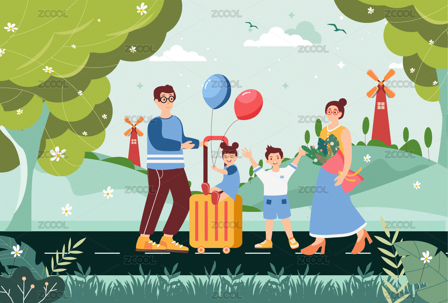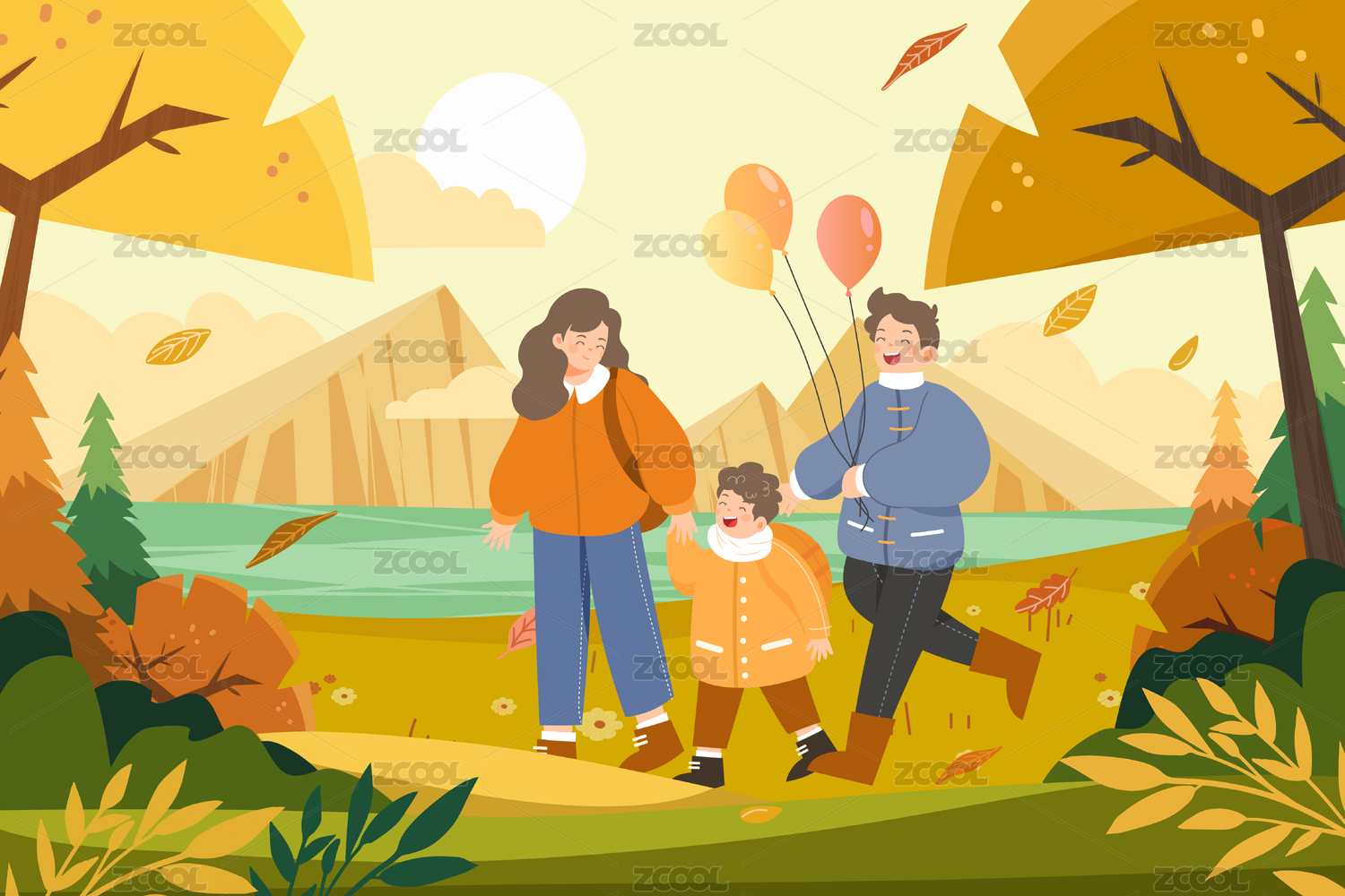 秋天秋游立秋秋分户外活动运动卡通漫画插画