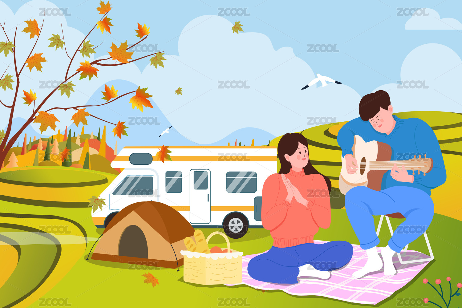 秋季,秋景,树木,森林,草地,野餐,露营,出游,旅游,人