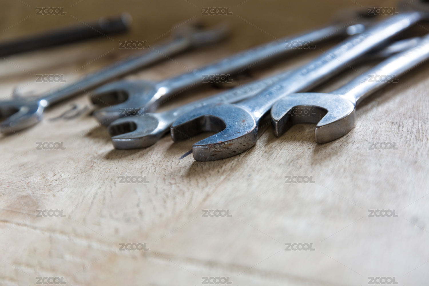 桌子上排列的金属扳手
