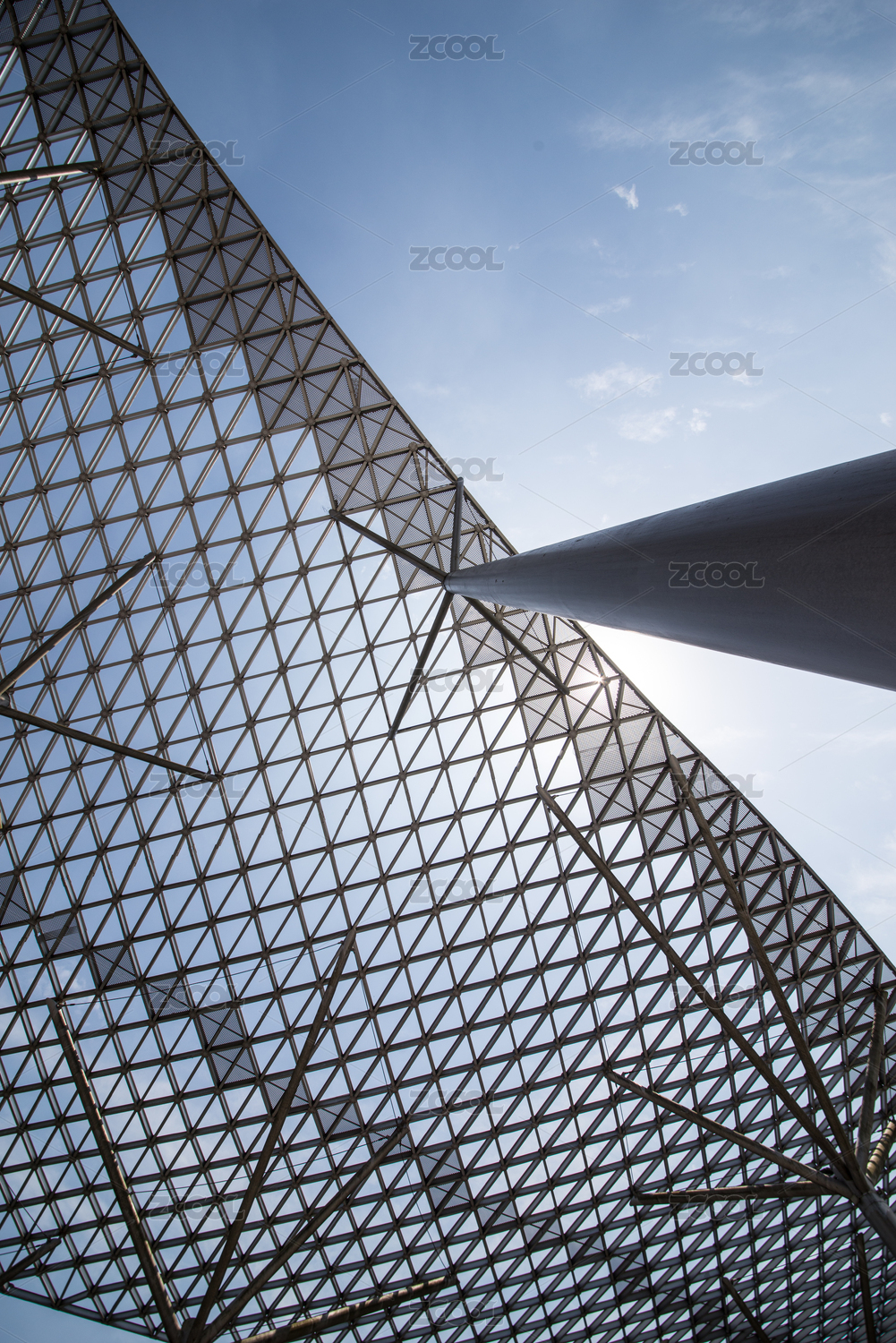 蓝天下网状的玻璃雨棚