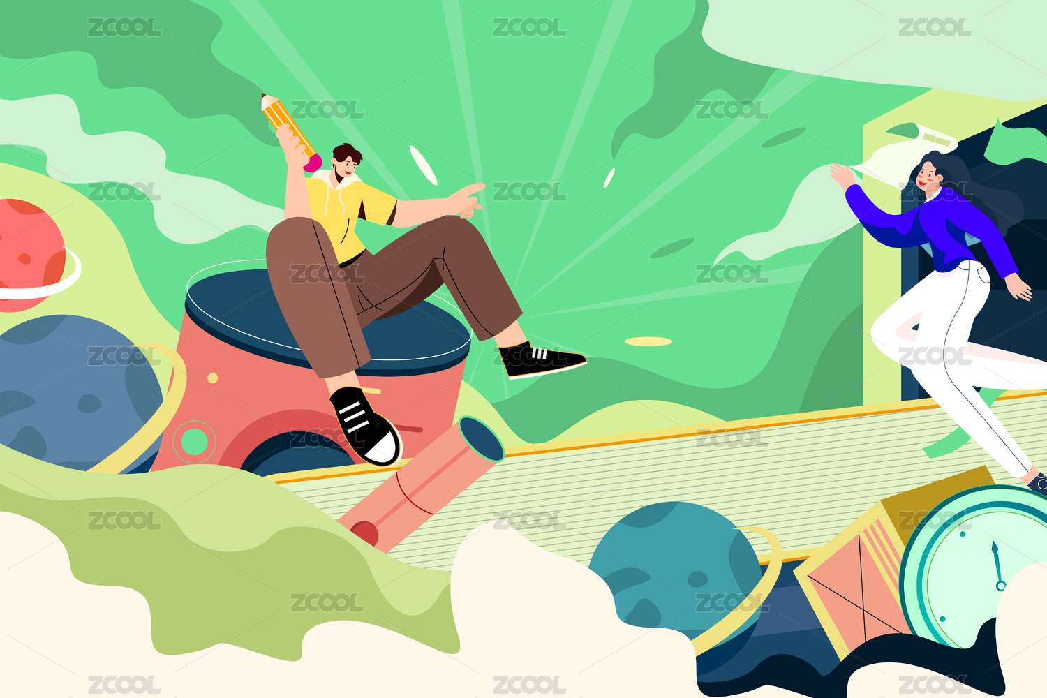 夏天人物清晨跑步运动健身健康减肥锻炼插画